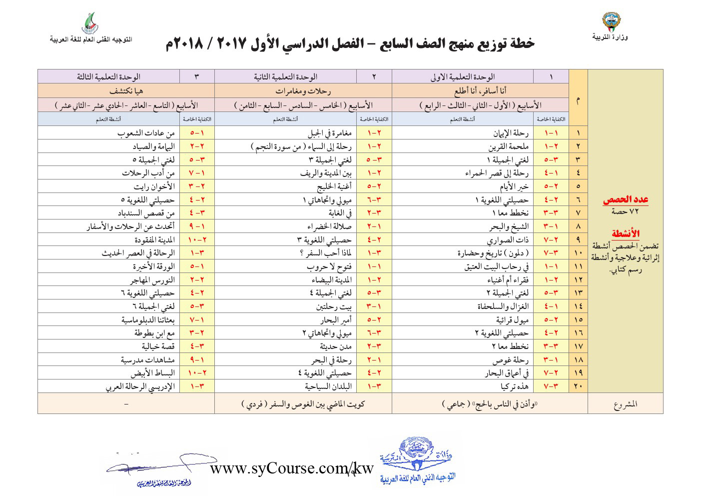 إليكم خطة توزيع منهاج اللغة العربية وفق دولة الكويت للعام الدراسي 2017-2017 ووفق الصف المحدد أعلاه |