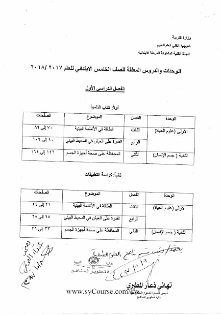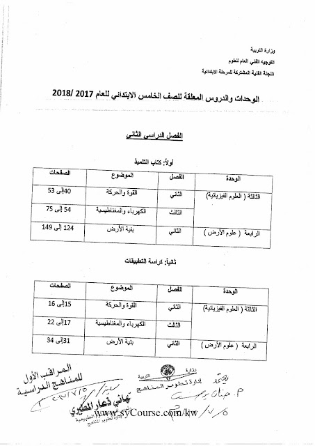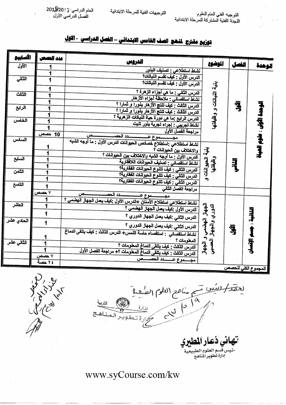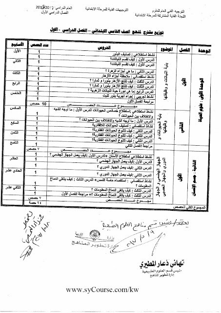 إليكم توزيع المنهج في مادة العلوم للصف المحدد أعلاه للعام الدراسي 2017-2018 وذلك وفق المنهاج الكويتي | ||