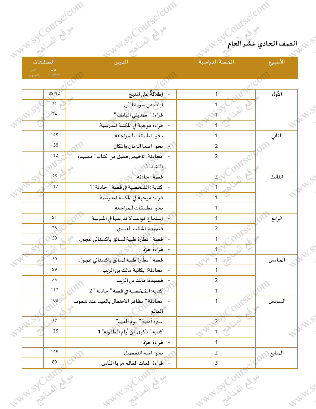 معلومات الملف: الصف الحادي عشر, الفصل الأول, لغة عربية, التوزيع الزمني للخطة الفصلية 2017-2017 | |||