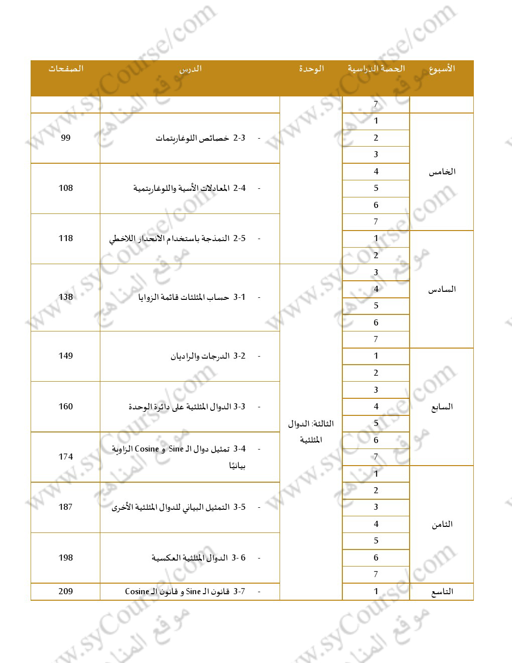 | التوزيع الزمني للفصل الاول | |||