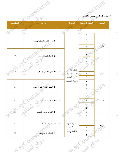 معلومات الملف: الصف الحادي عشر المتقدم, الفصل الأول, رياضيات, التوزيع الزمني للفصل الاول 2017-2018 | |||