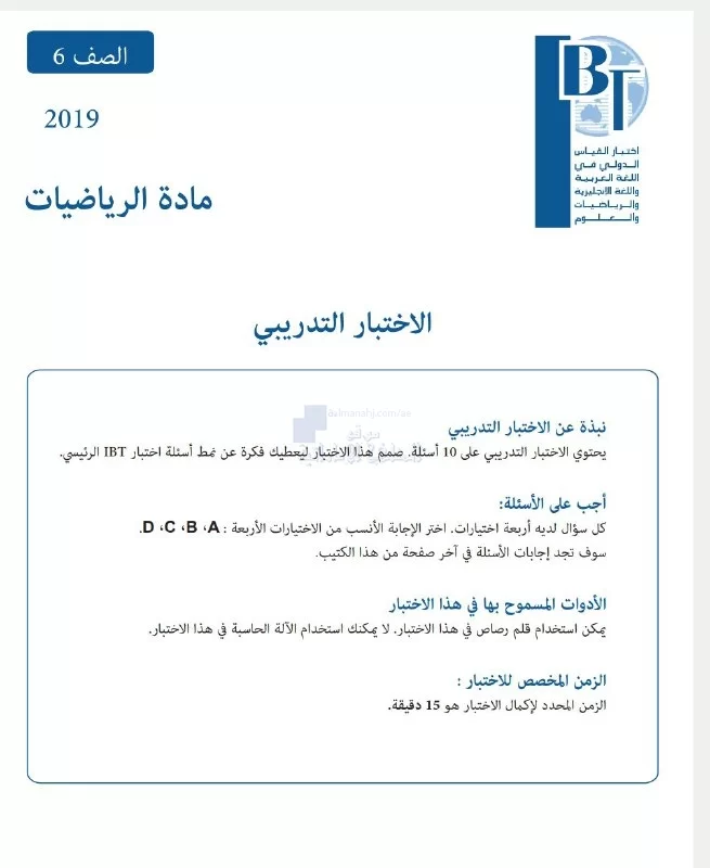 معلومات الملف: نرفق لكم ملف يتضمن اختبار القياس الدولي IBT متبوع بالإجابات من مادة الرياضيات للصف السادس الفصل الدراسي الأول للعام الدراسي 2019-2020 | ||
