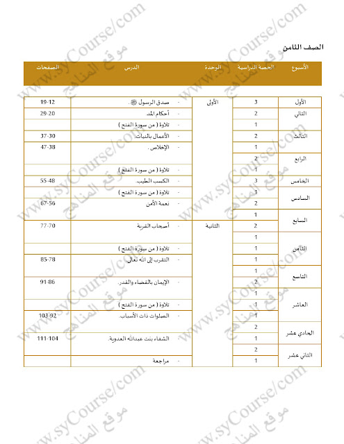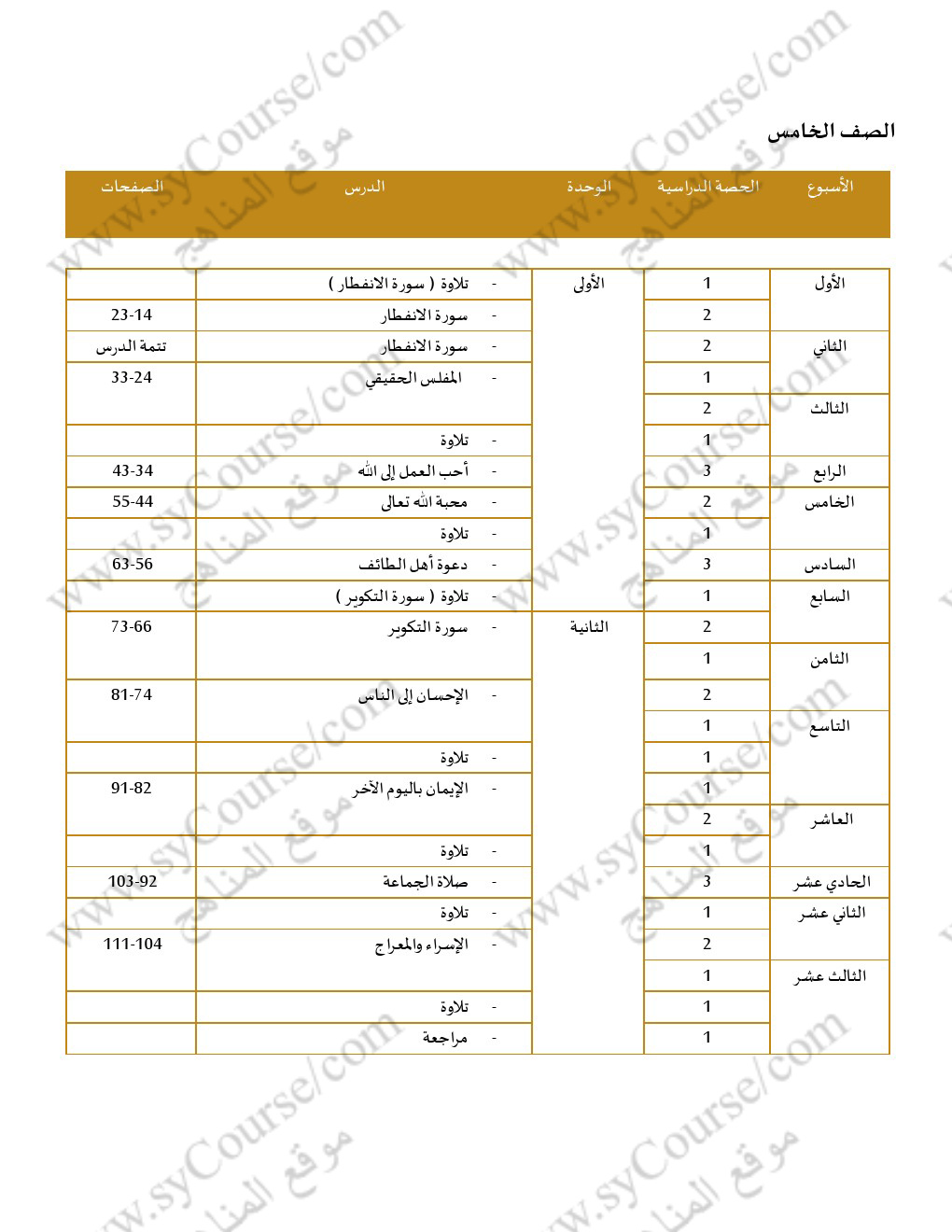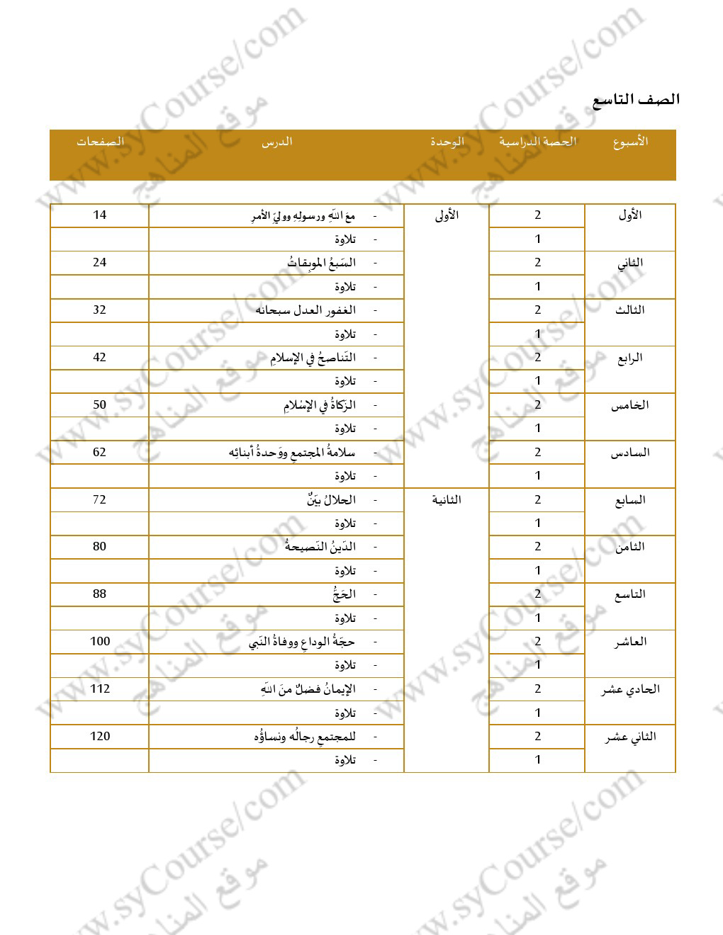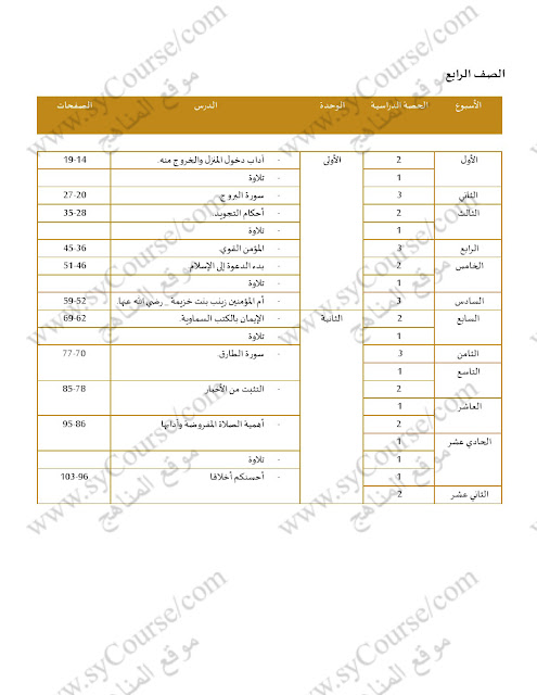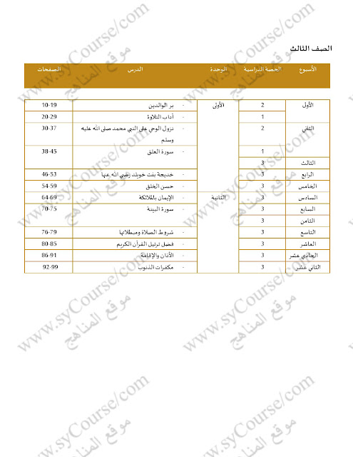 التوزيع الزمني لمادة التربية الاسلامية لجميع الصفوف الفصل الاول من | |||