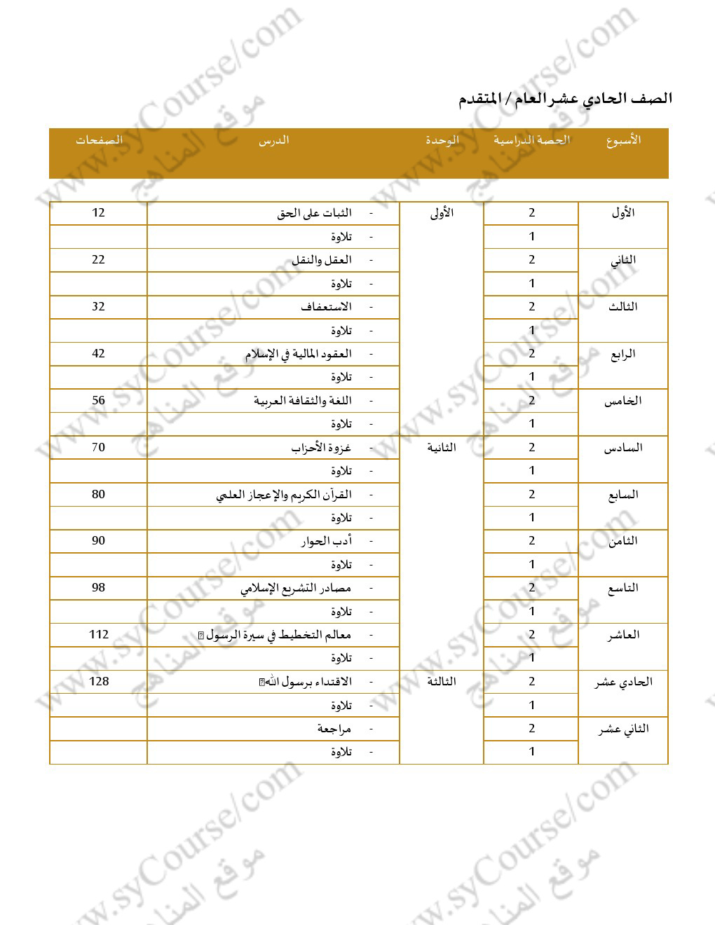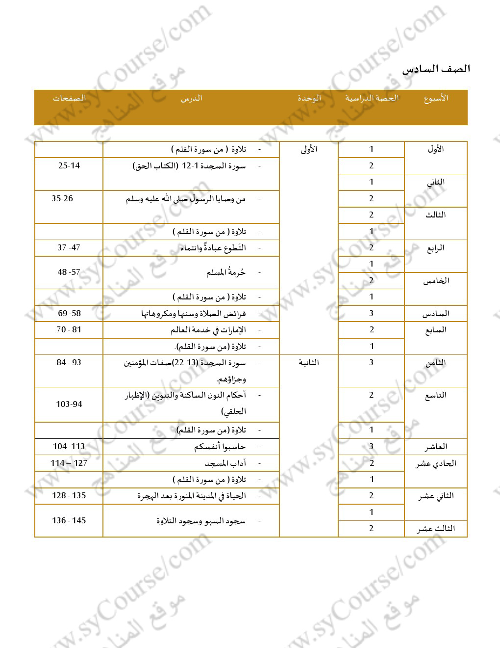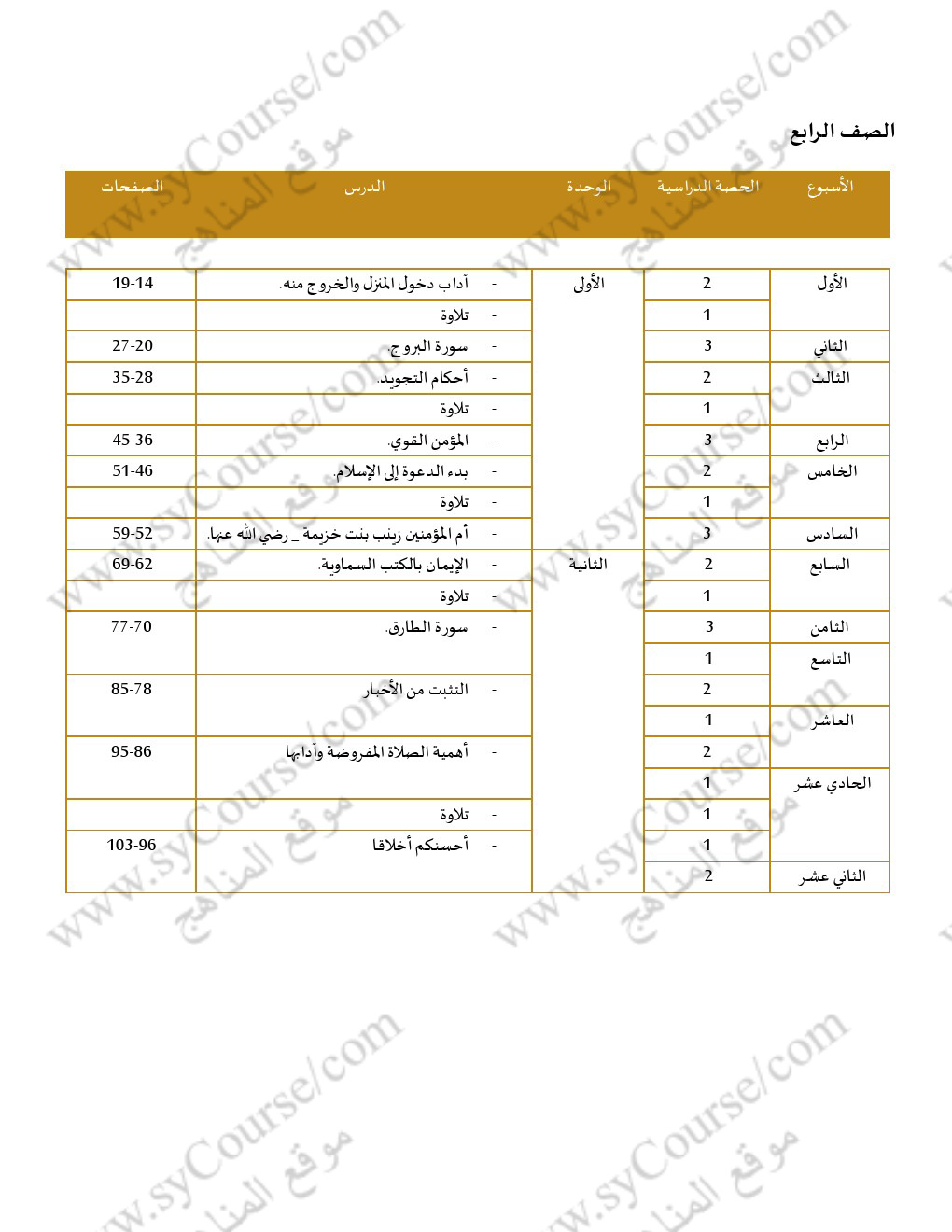 التوزيع الزمني لمادة التربية الاسلامية لجميع الصفوف الفصل الاول من | |||