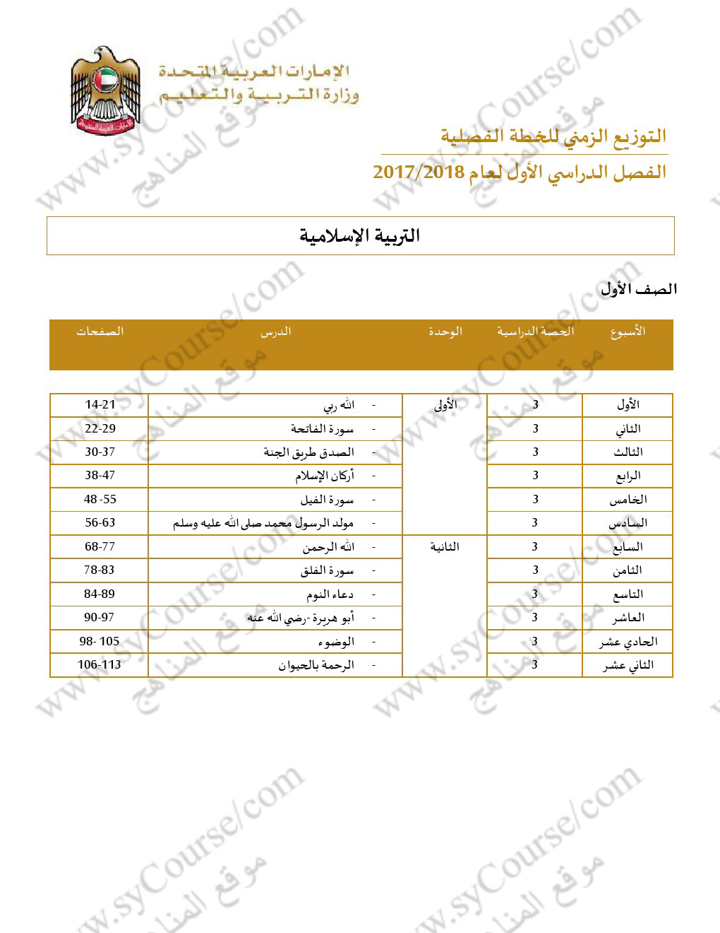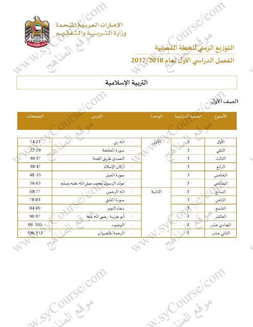 رابط تحميل وعرض ( التوزيع الزمني لمادة التربية الاسلامية لجميع الصفوف الفصل الاول من ) | |||