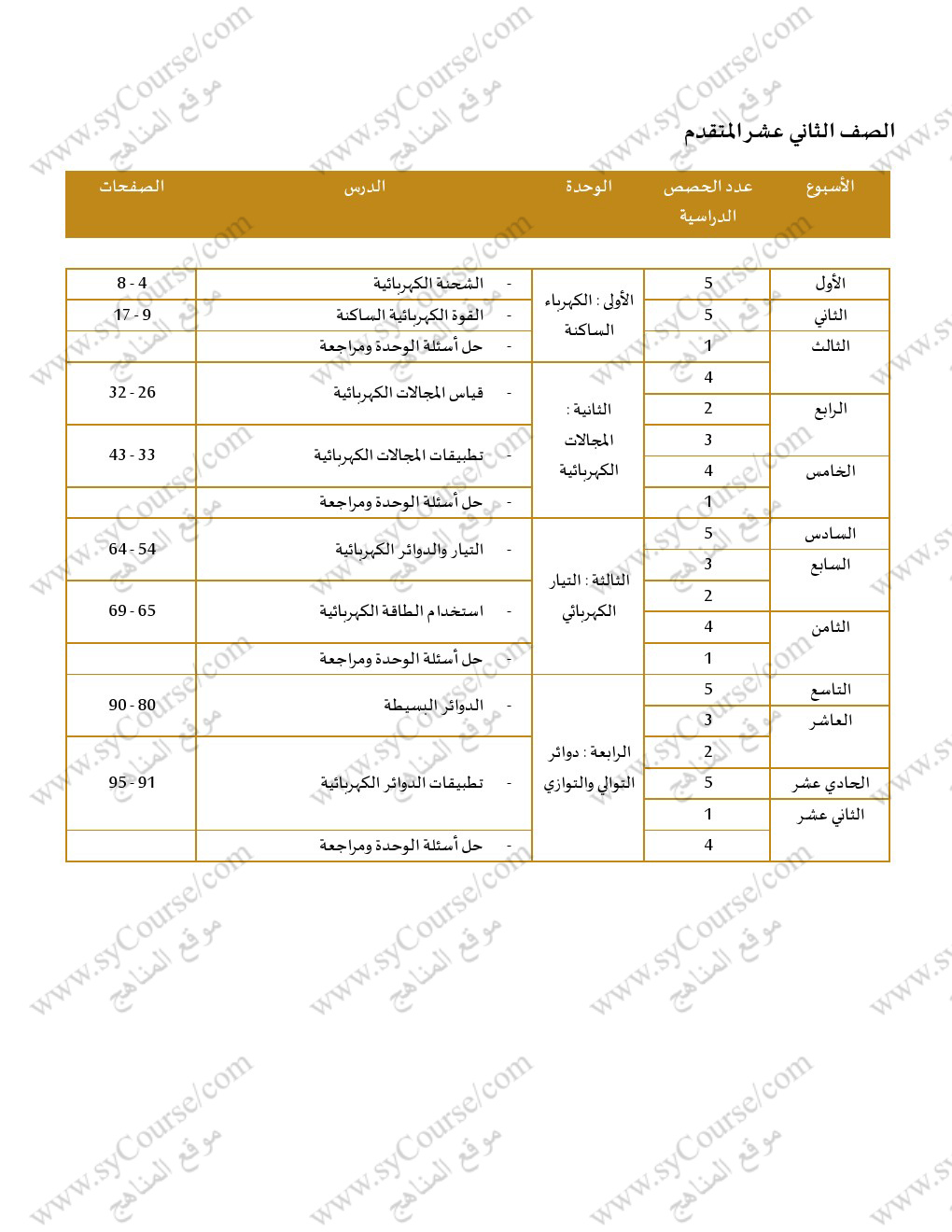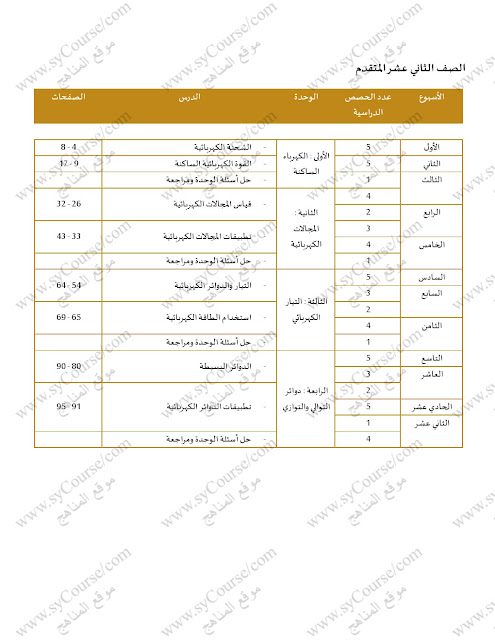 معلومات الملف: الصف الثاني عشر المتقدم, الفصل الأول, 2017-2018, فيزياء, التوزيع الزمني للخطة الفصلية | ||