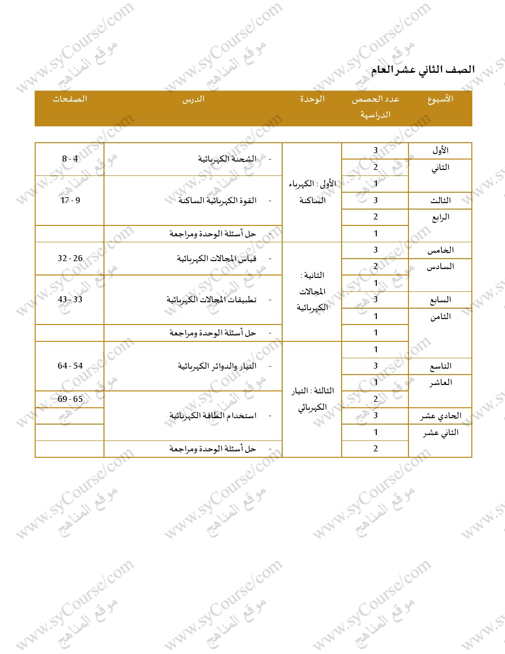 معلومات الملف: الصف الثاني عشر العام, الفصل الأول, فيزياء, 2017-2018, التوزيع الزمني للخطة الفصلية | ||