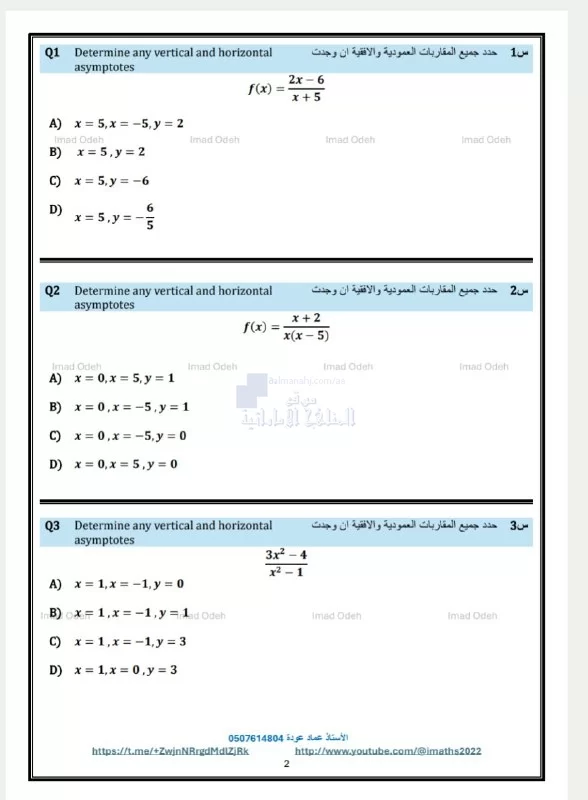 أوراق عمل الدرس الخامس الدوال النسبية Rational Functions من الوحدة الثانية - إعداد: عماد عودة | ||