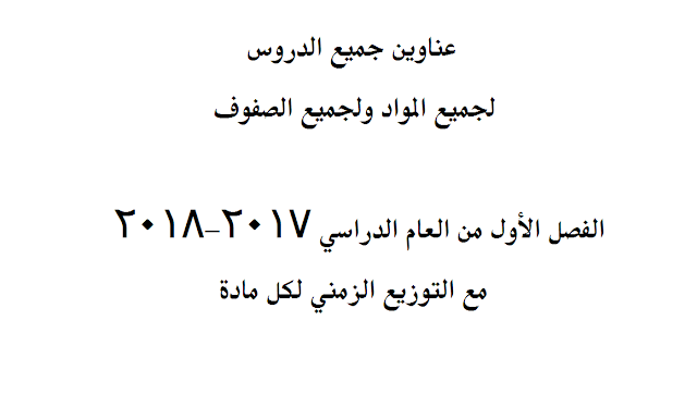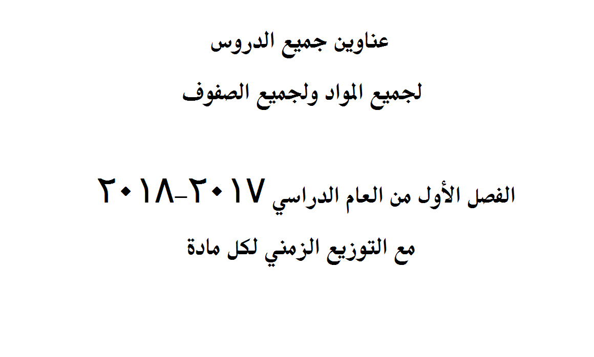تفاصيل الخبر: عناوين جميع الدروس لجميع المواد ولجميع الصفوف الفصل الأول من العام الدراسي 2017-2018 | ||