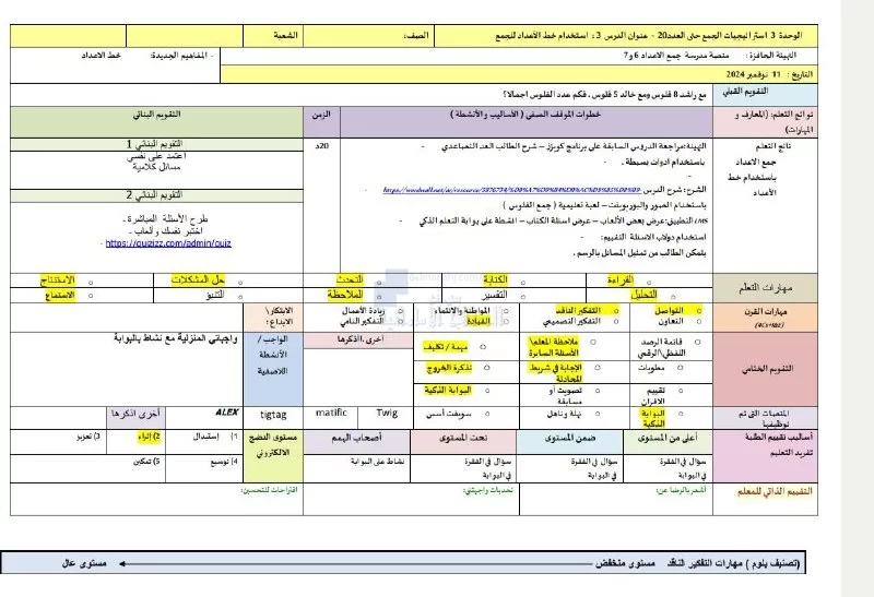 تم إيجاد الملف: الخطة الدرسية اليومية الدرس الثالث استخدام خط الأعداد للجمع من الوحدة الثالثة
