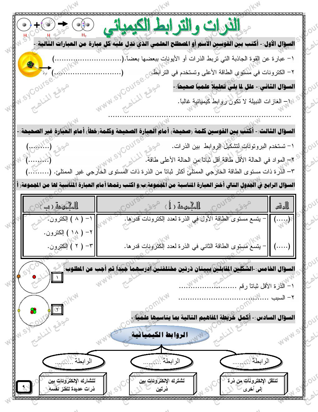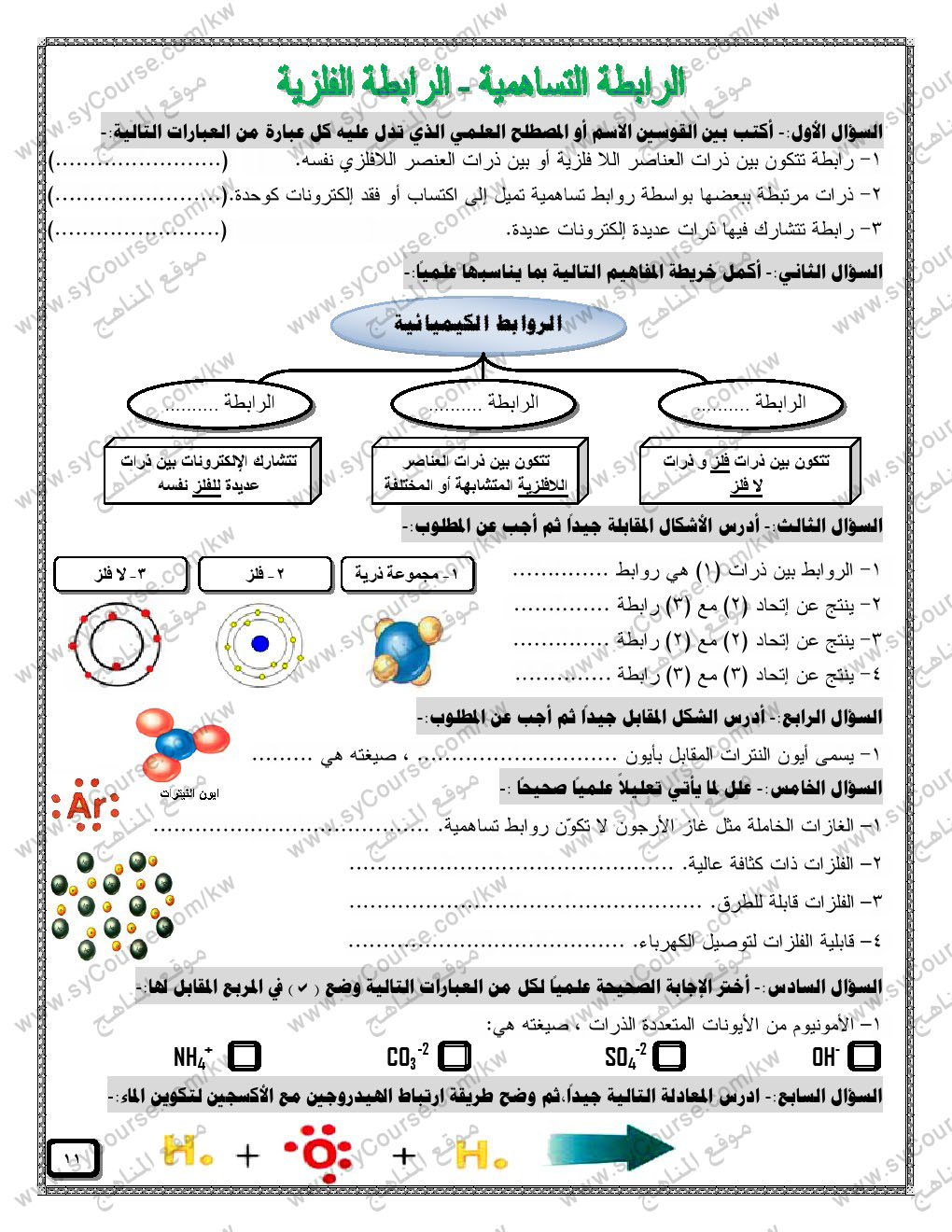 معلومات الملف: الصف الثامن, علوم, الفصل الأول, 2017-2018, أوراق عمل كامل الفصل الأول | |||