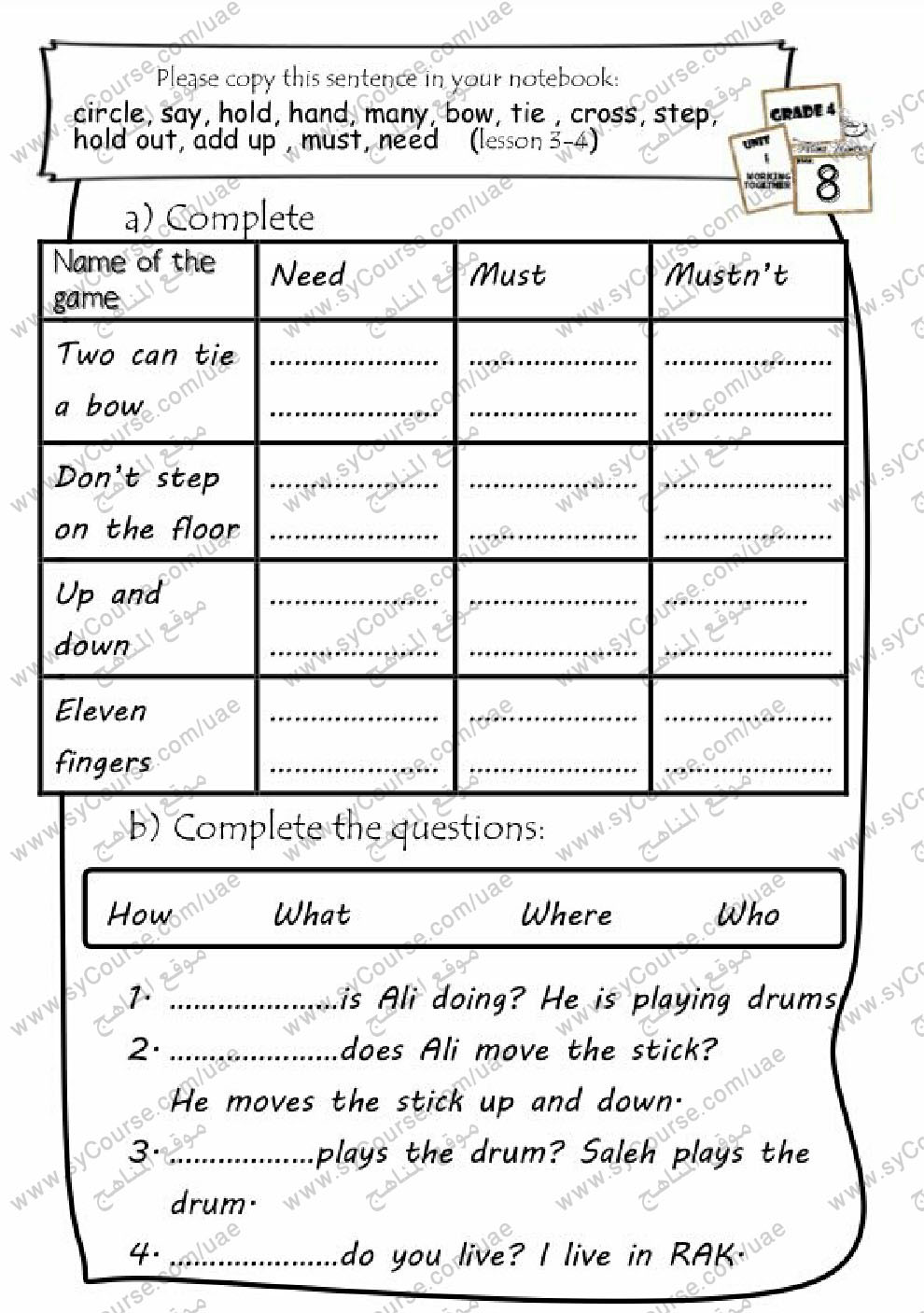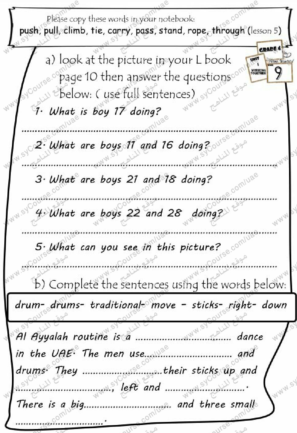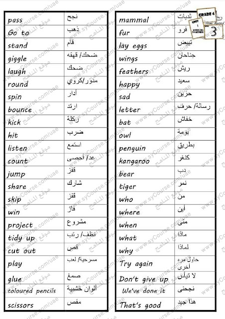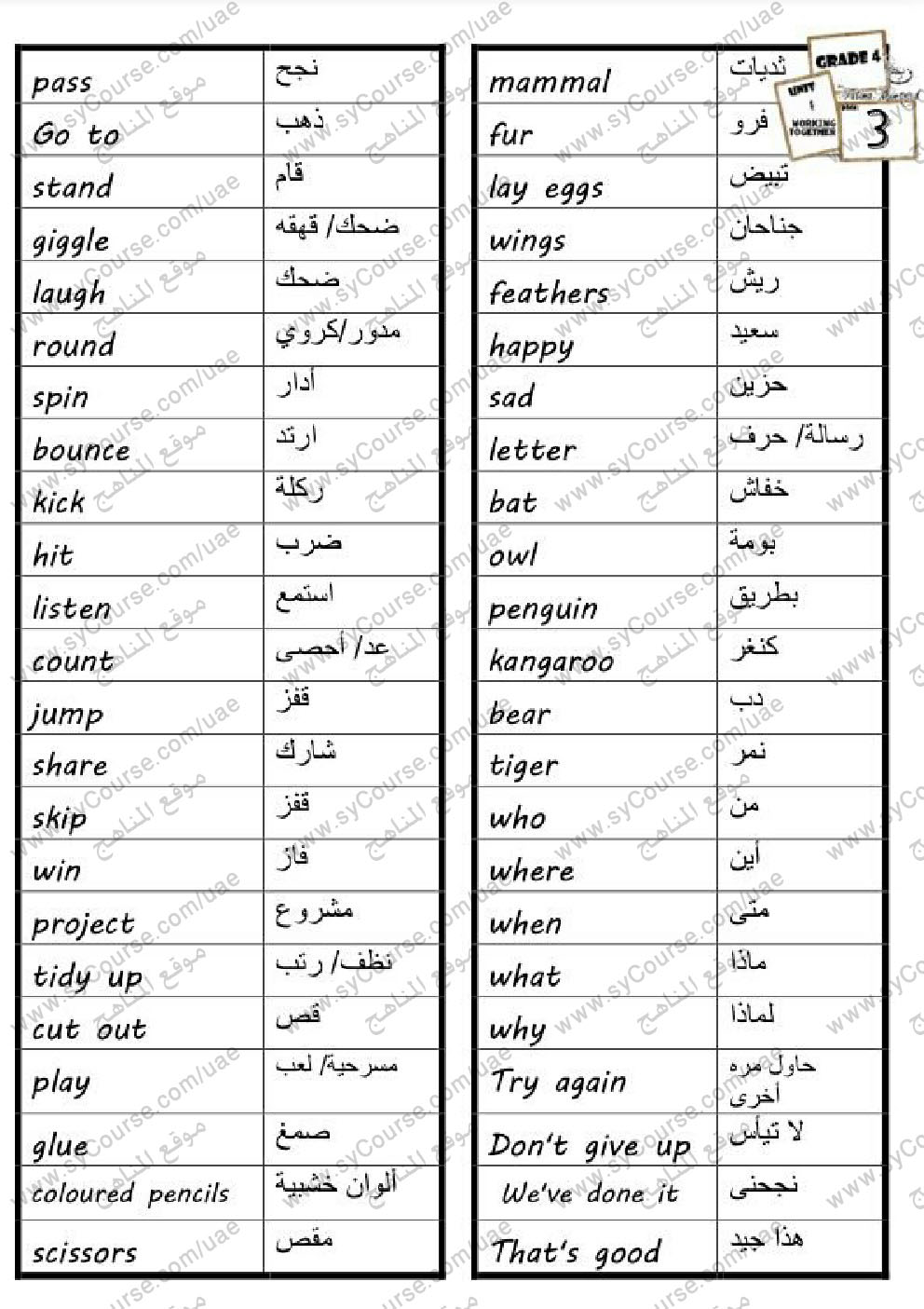 معلومات الملف: الصف الرابع, الفصل الأول, لغة انكليزية, 2017-2018, كلمات الوحدة الاولى (working together)مع الترجمة | |||
