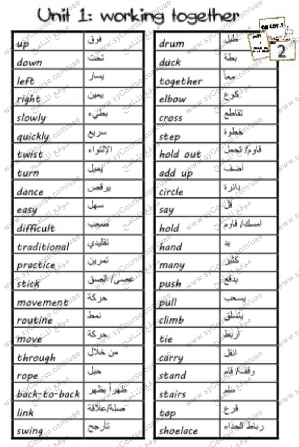 | اضغط هنا لتحميل وعرض ( كلمات الوحدة الاولى (working together)مع الترجمة ) | |||