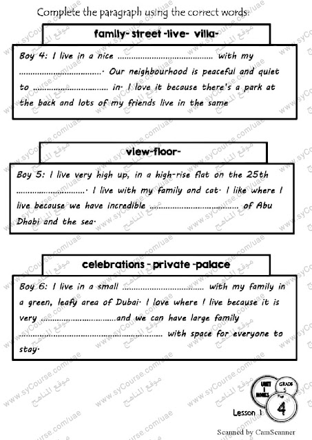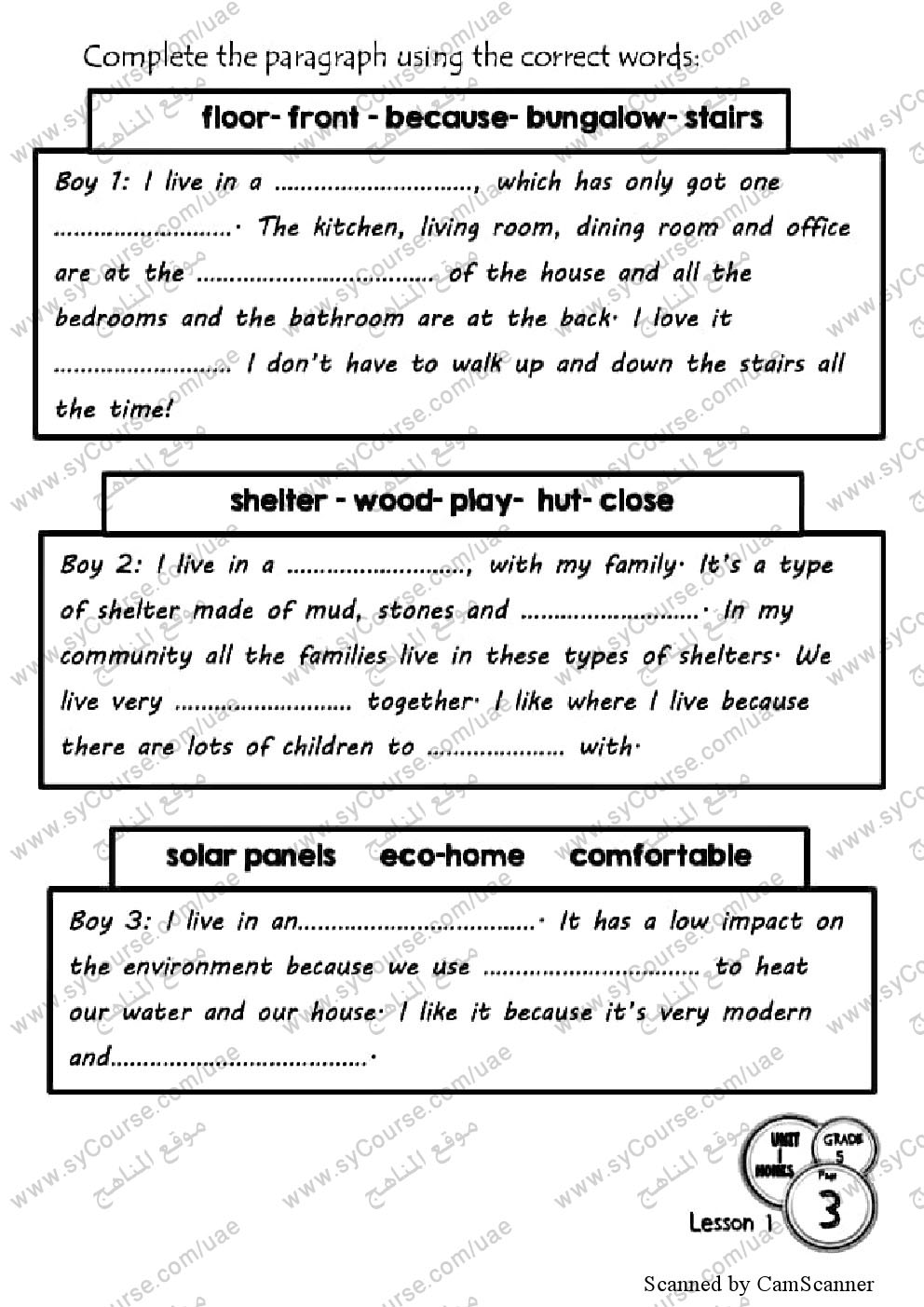 معلومات الملف: الصف الخامس, الفصل الأول, لغة انكليزية, 2017-2018, تدريبات الوحدة الأولى Homes | ||