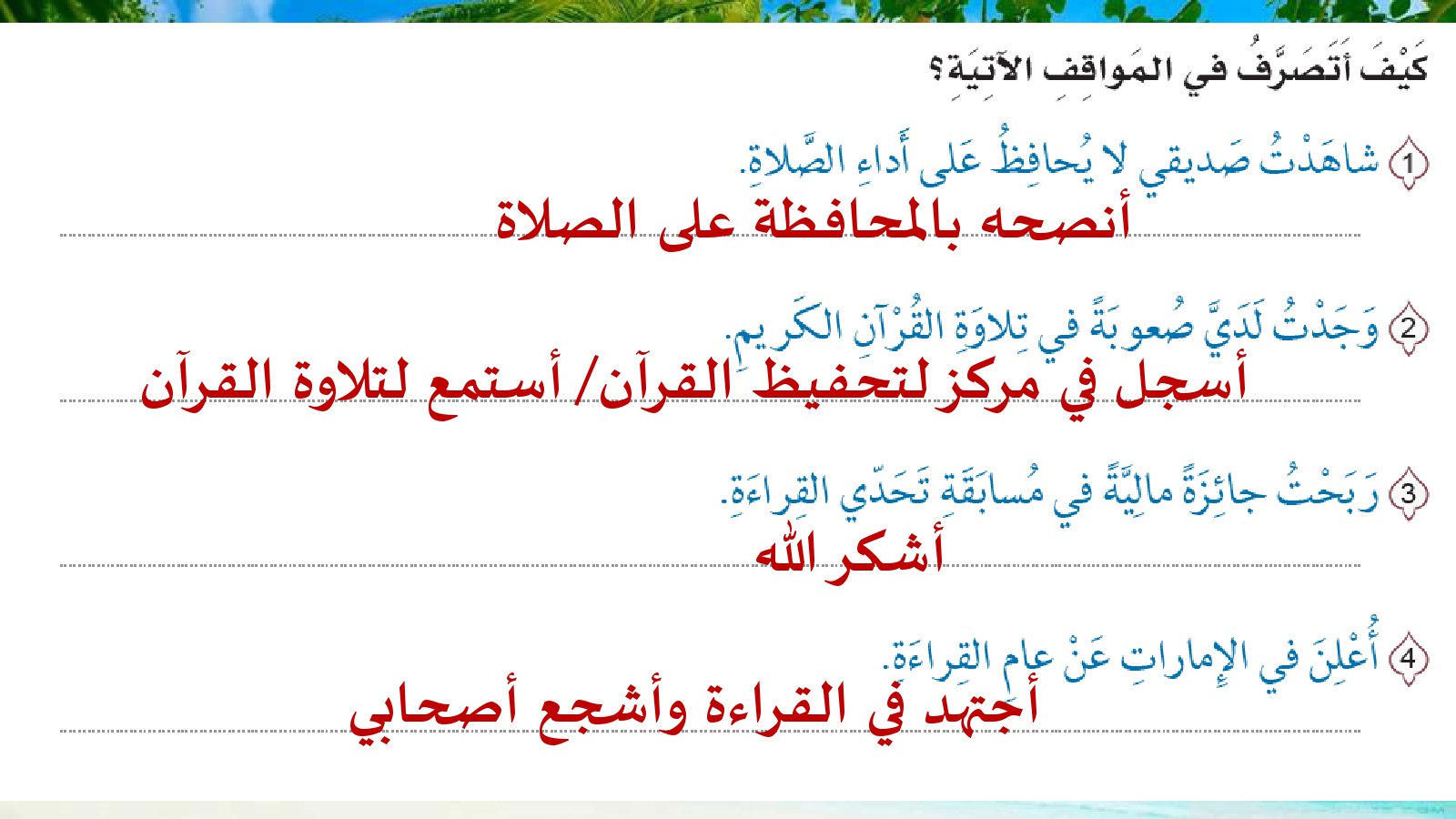 أنت هنا: موقع المناهج ⇦ المناهج الإماراتية ⇦ الصف الثالث ⇦ تربية اسلامية ⇦ الفصل الأول ⇦ حلول |