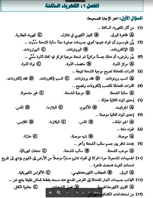 أسئلة اختبارات (الكهرباء) شاملة للوحدات الثلاث الأولى | ||