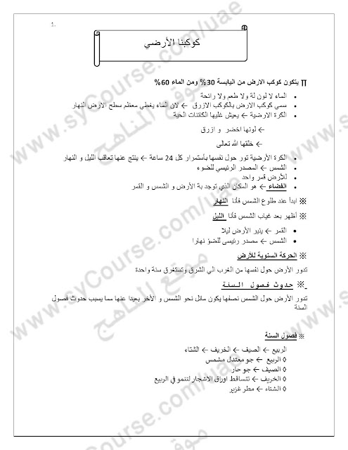 تلخيص الوحدة الأولى (كوكبنا الأرضي) | |||