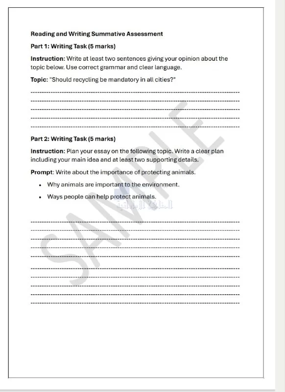 جميع الاختبارات التشخيصية المتوفرة في جميع المواد ولجميع الصفوف | |