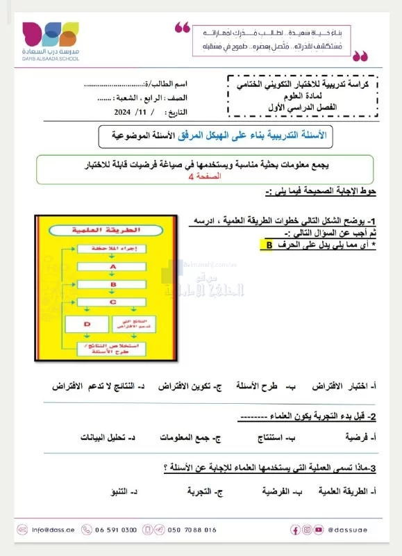 | الكراسة التدريبية للاختبار النهائي وفق الهيكل الوزاري - إعداد: مدرسة درب السعادة | ||