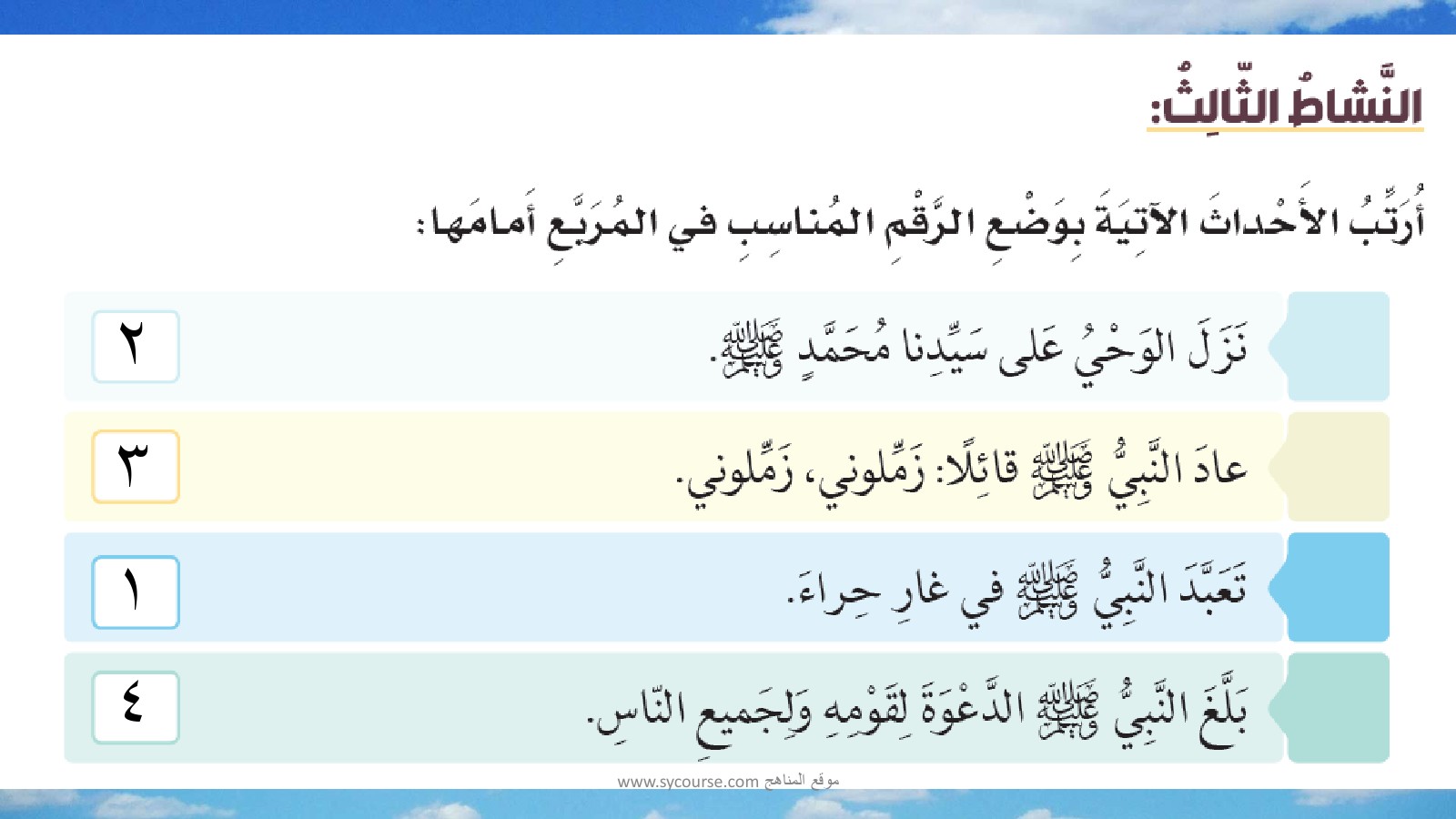 | حل وشرح درس نزول الوحي على النبي (ص) | |||