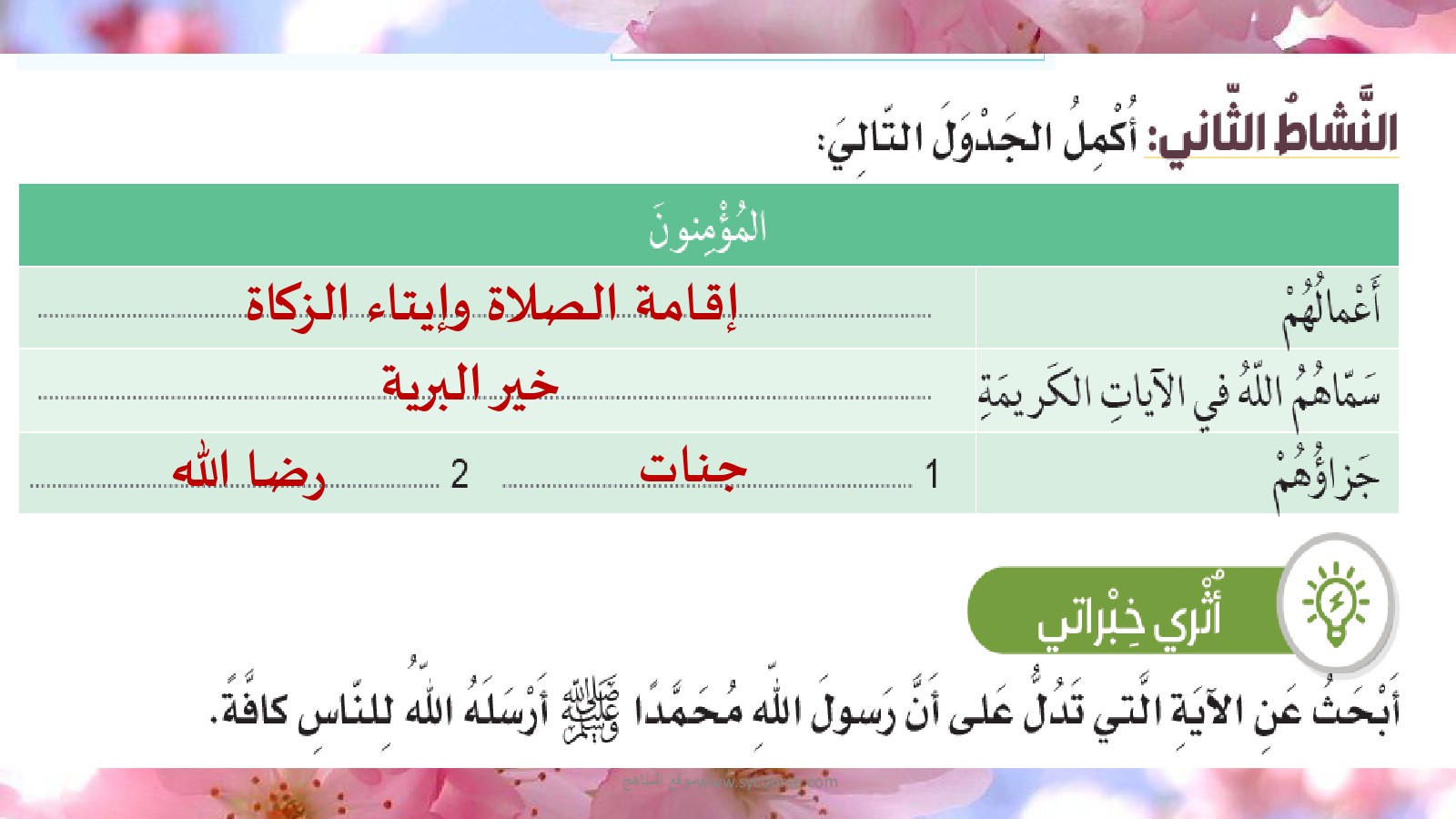 معلومات الملف: الصف الثالث, الفصل الأول, تربية اسلامية, 2017-2018, حل وشرح درس سورة البينة | |||
