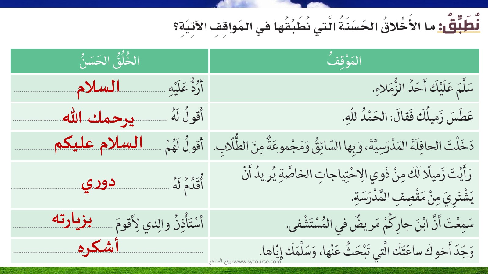 | اضغط هنا لتحميل وعرض ( حل درس وإنك لعلى خلق عظيم ) | |||