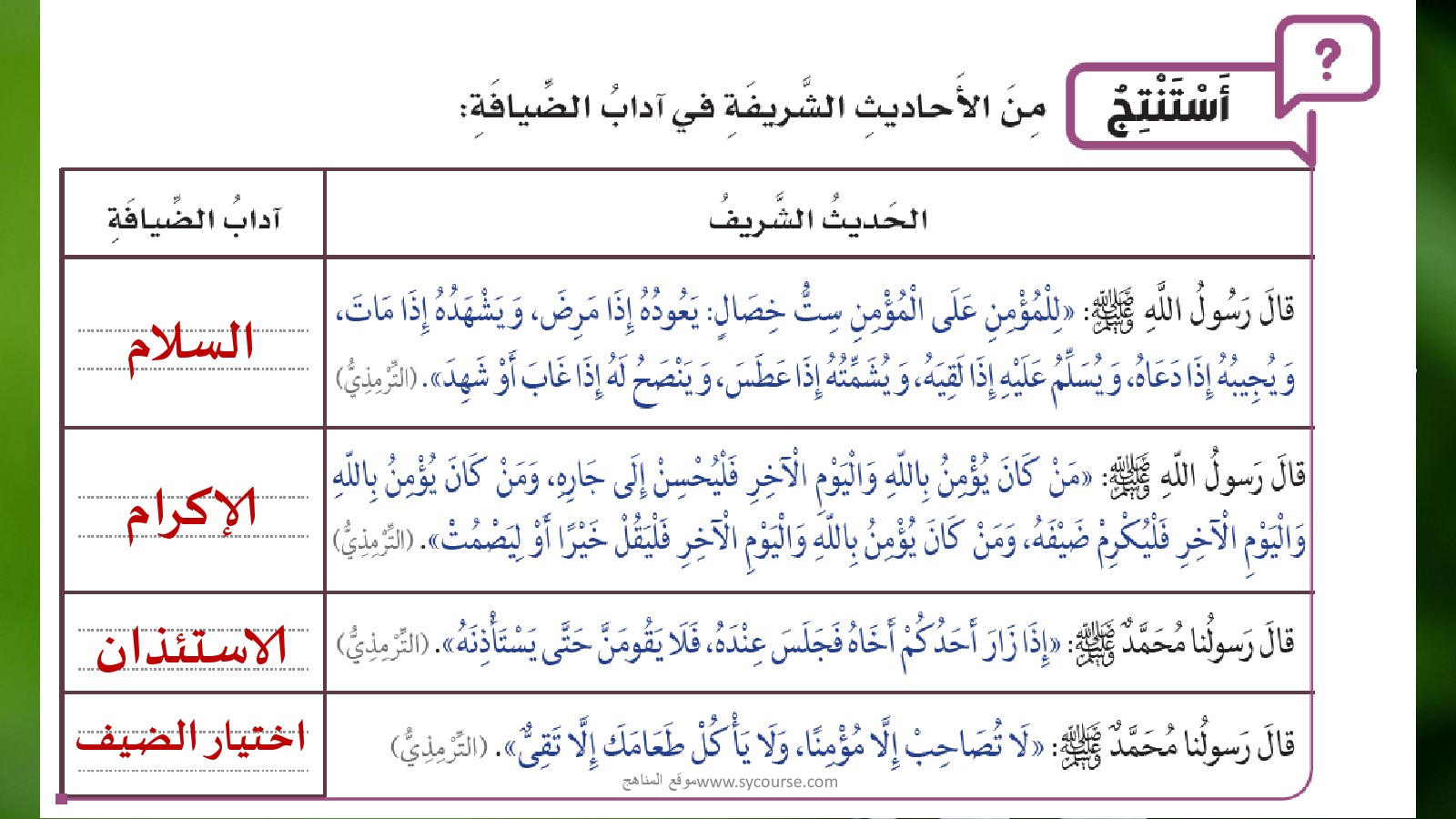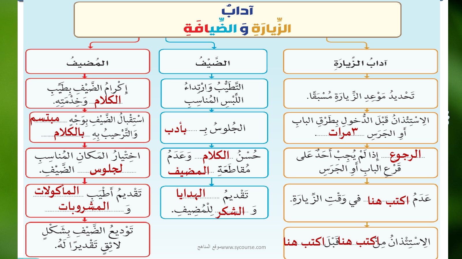 حل درس آداب الزيارة والضيافة | |||
