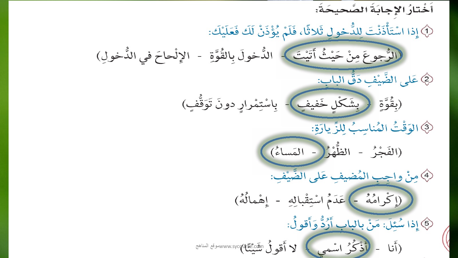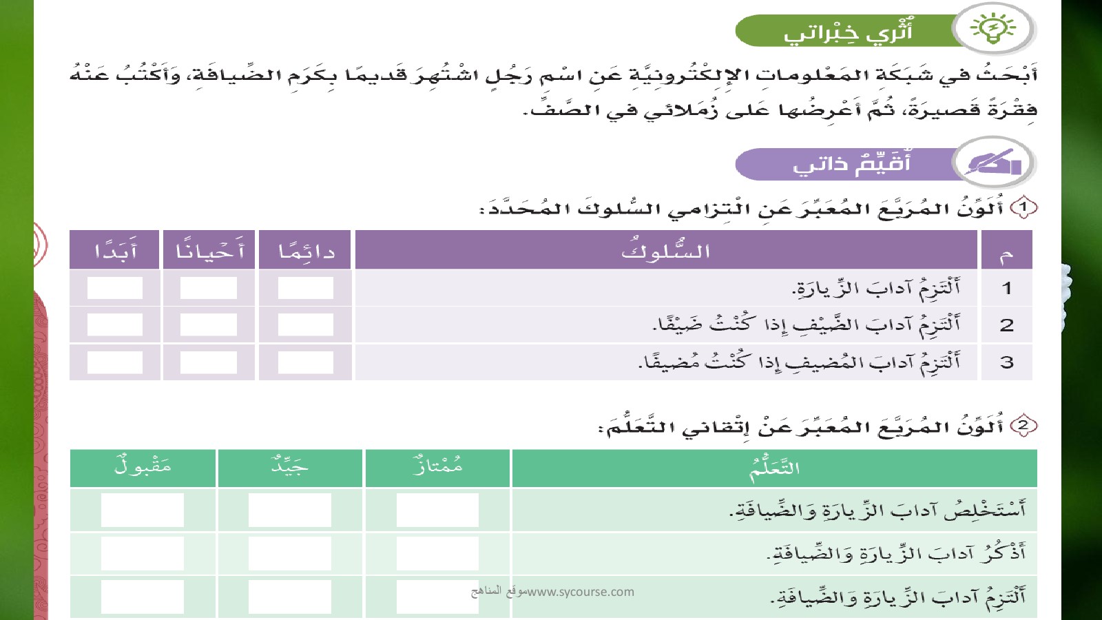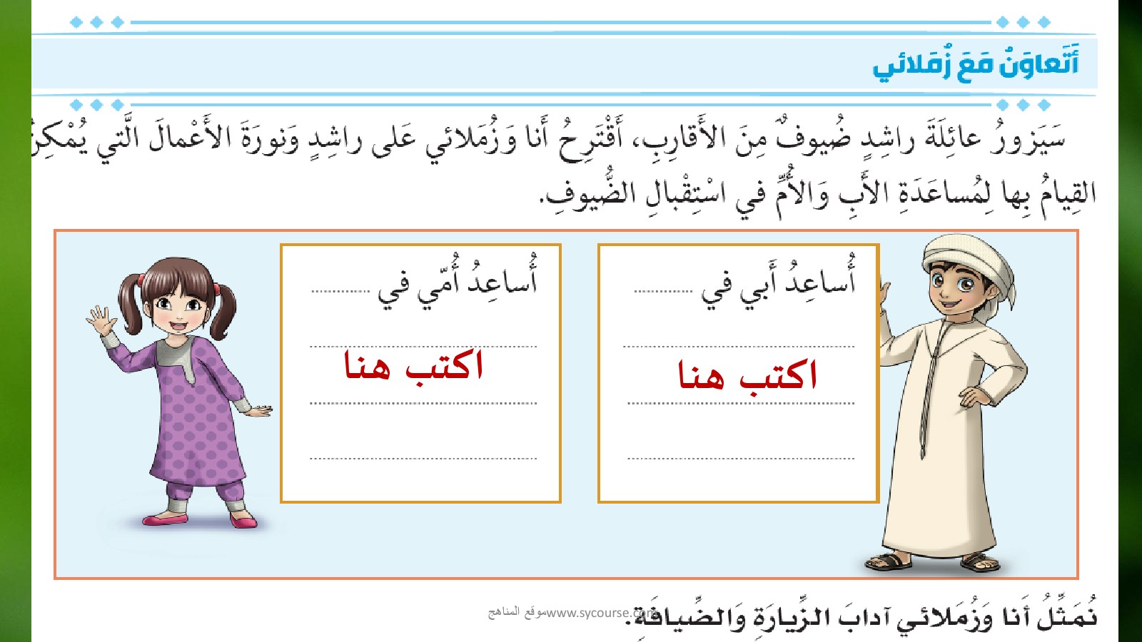 رابط تحميل وعرض ( حل درس آداب الزيارة والضيافة ) | |||