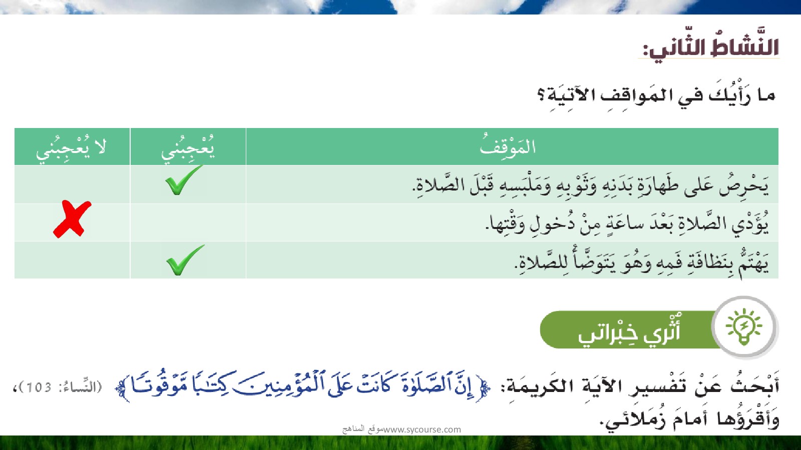 | أنت هنا: موقع المناهج ⇦ المناهج الإماراتية ⇦ الصف الثالث ⇦ تربية اسلامية ⇦ الفصل الأول ⇦ حلول |