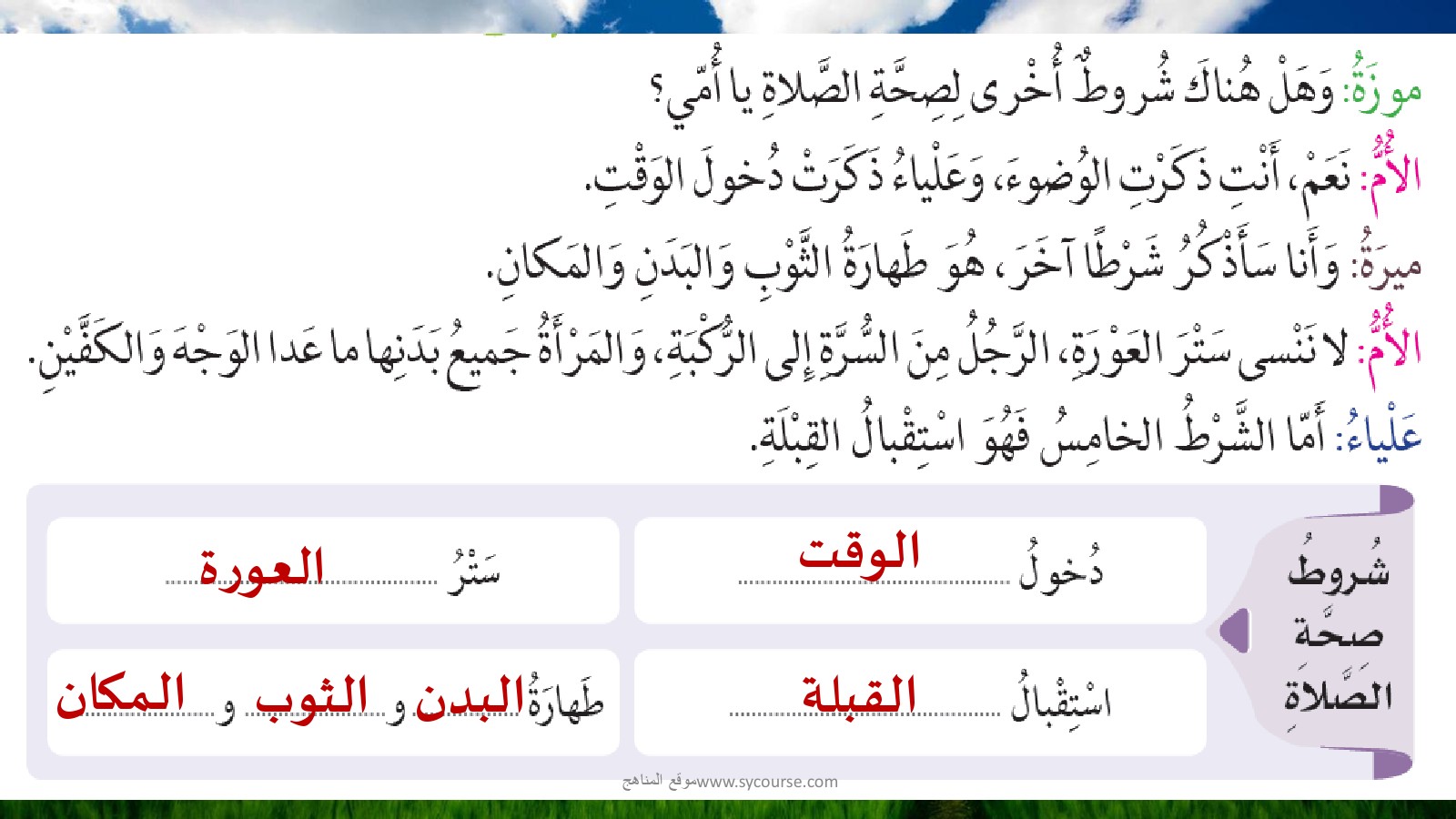 | حل درس شروط الصلاة ومبطلاتها | |||