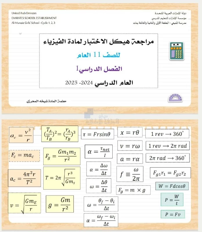 | 🆕 وزارة التربية والتعليم تكشف تفاصيل التقويم الأكاديمي 2025 – 2026 | اختبار نهاية الفصل لطلبة الصف الحادي عشر العام التالي سيكون في مادة فيزياء بتاريخ 2025-11-20 - اضغط للحصول على ملفات مادة فيزياء واضغط هنا للحصول على ملفات هياكل مادة فيزياء |