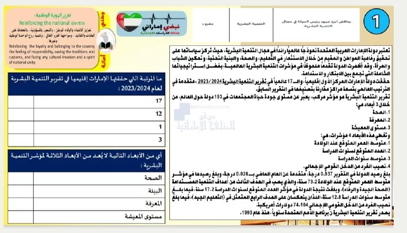 | أهلاً بكم جميعاً طلاباً ومدرسين وأهالي طلبة ومهتمين، في قسم دولة الإمارات ، نحن الآن في الفصل الأول من العام الدراسي 2025/2026 وتاريخ اليوم 2025/11/17 م | |