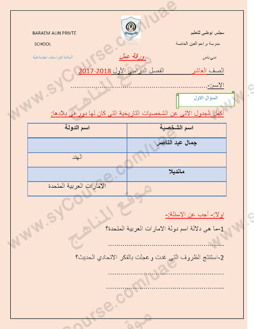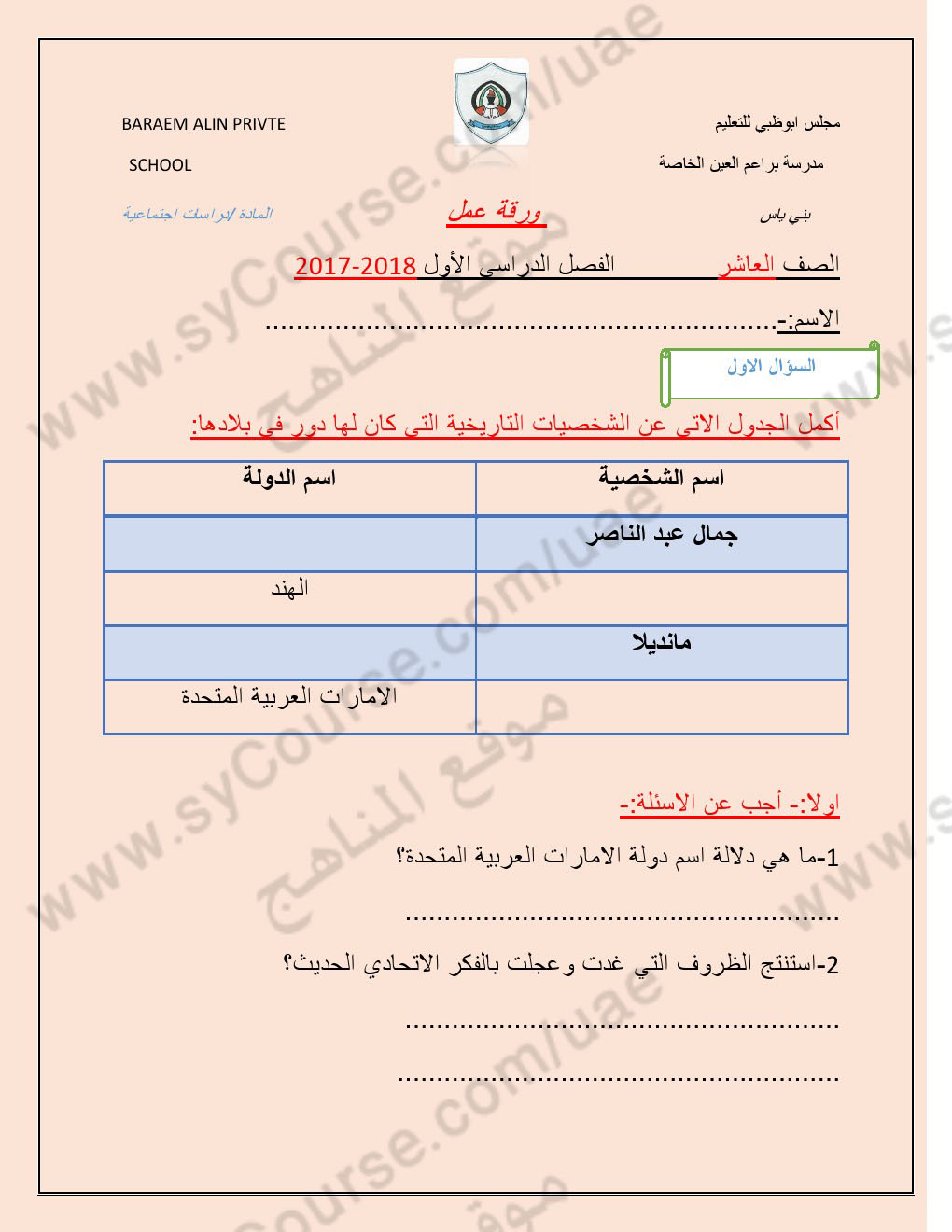 معلومات الملف: الصف العاشر, الفصل الأول, اجتماعيات, 2017-2018, أوراق عمل . | |||