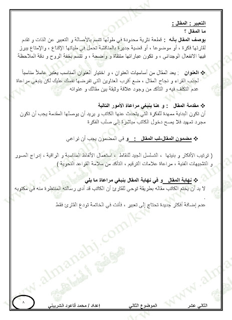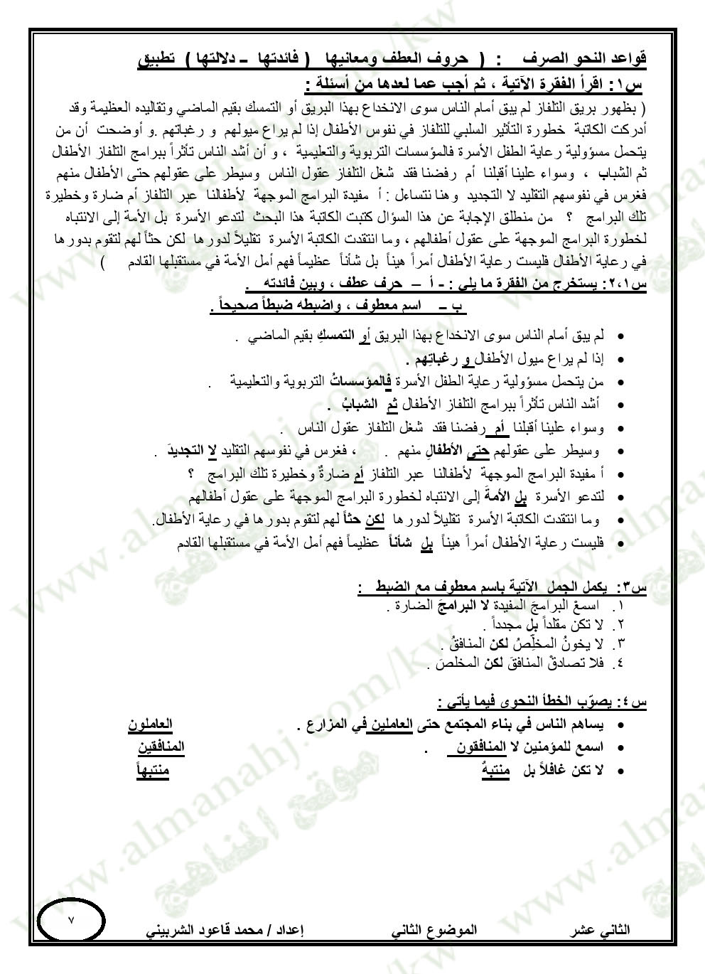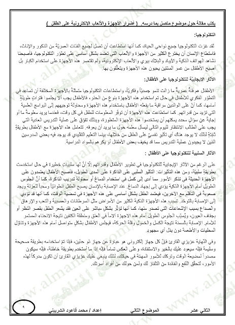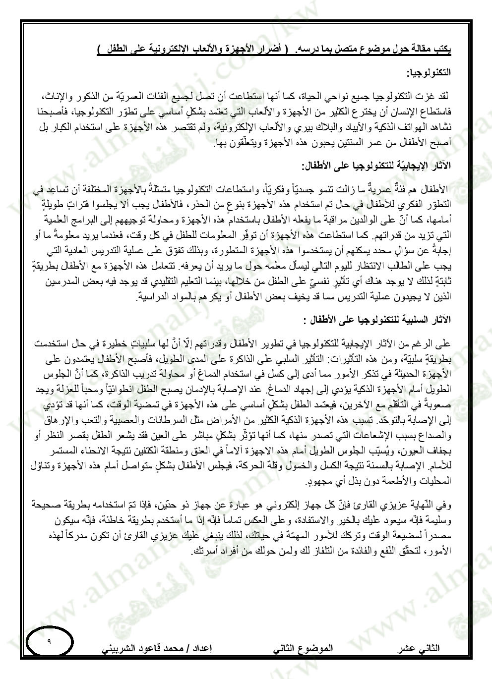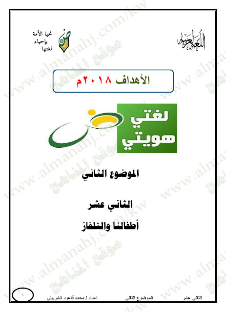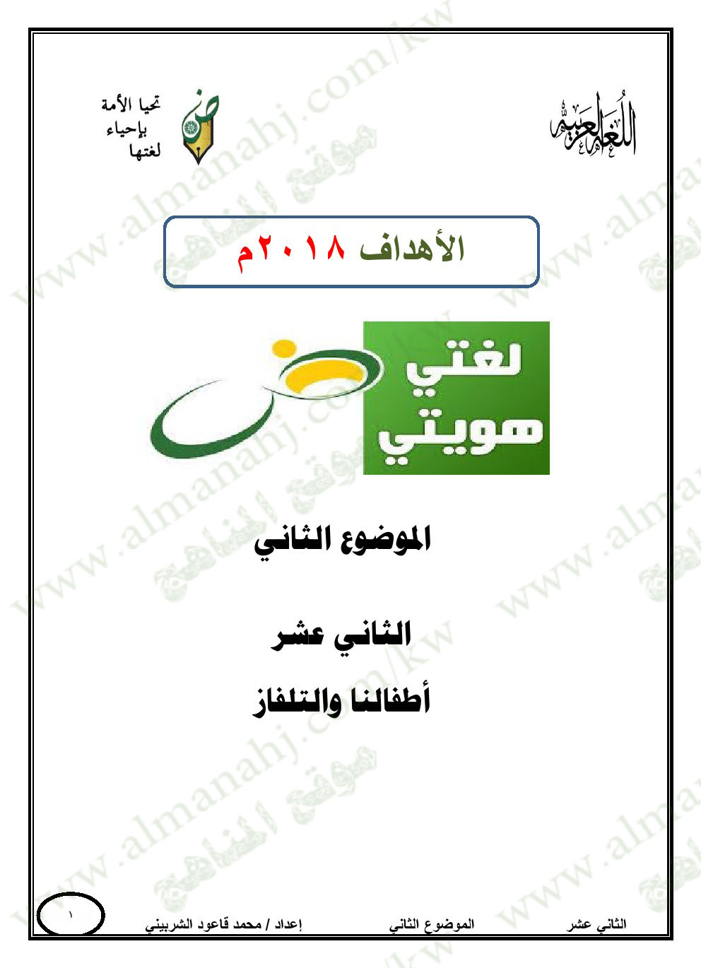 معلومات الملف: الصف الثاني عشر, لغة عربية, الفصل الأول, 2017-2018, الموضوع الثاني عشر: أطفالنا والتلفاز | |||