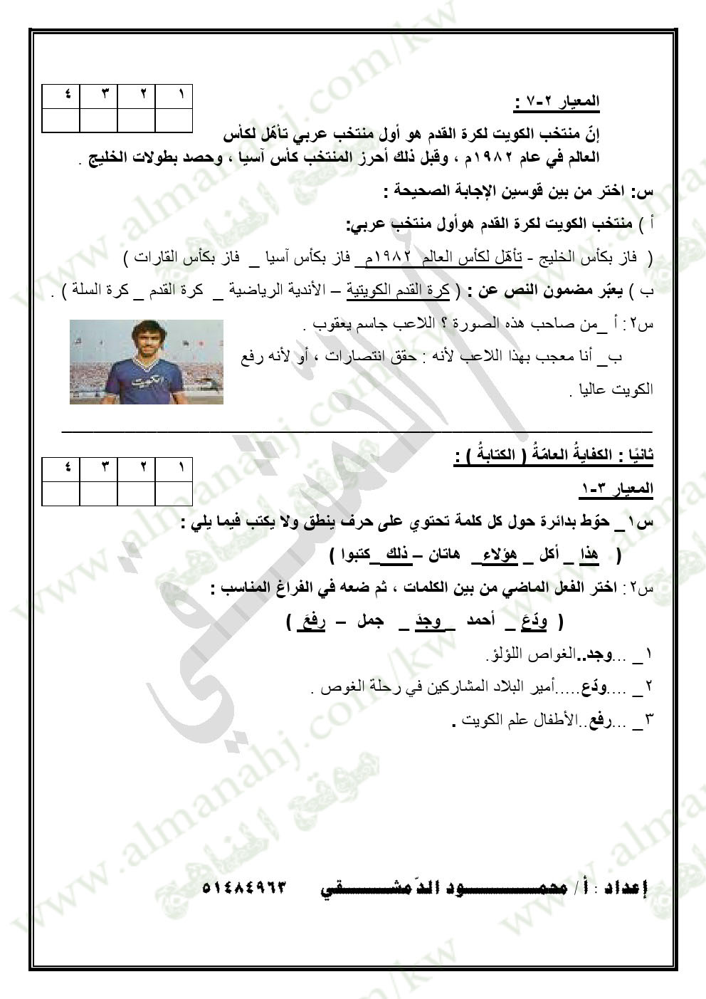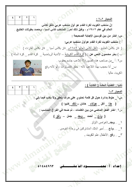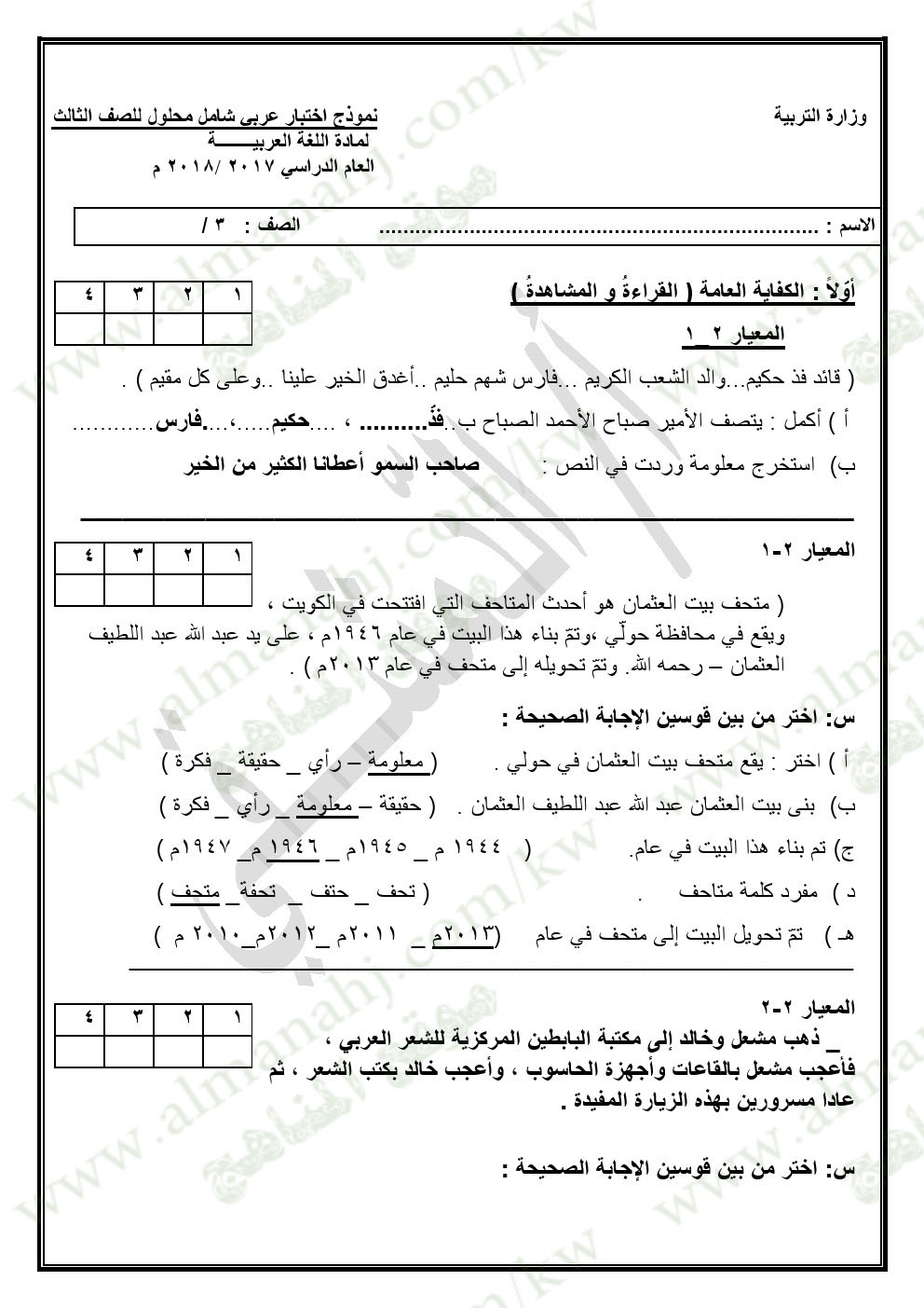 معلومات الملف: الصف الثالث, لغة عربية, الفصل الأول, 2017-2018, اختبار شامل مع الحل | |||