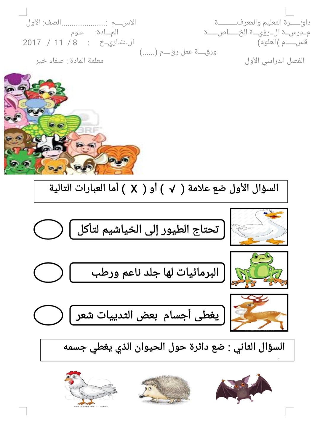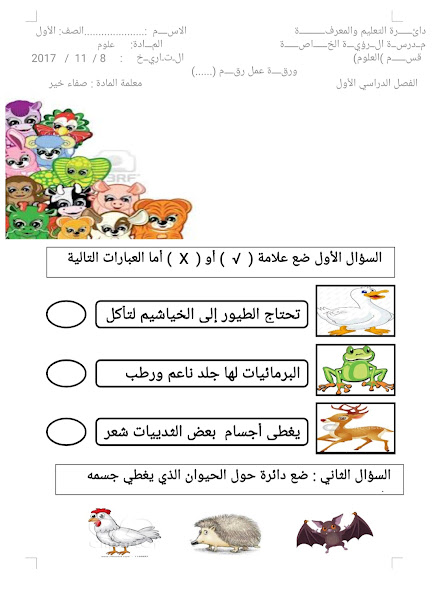 نرفق لكم ملف يتضمن ورقة عمل الحيوانات ونموها من مادة العلوم للصف الاول الفصل الدراسي الأول للعام الدراسي 2017-2018