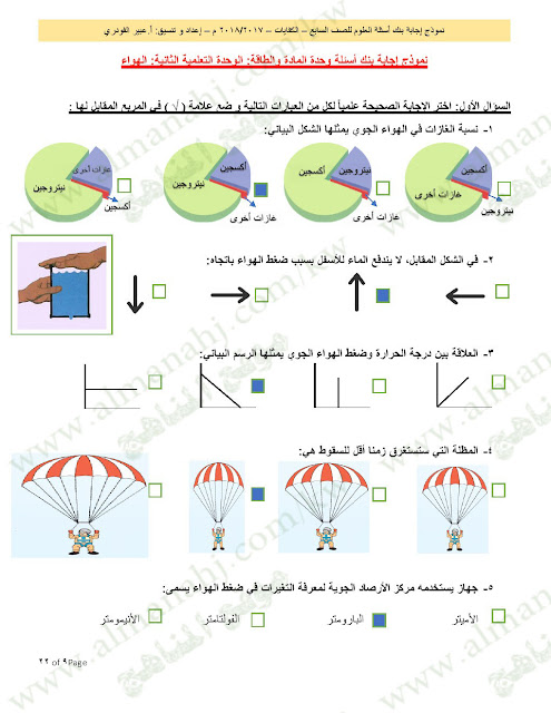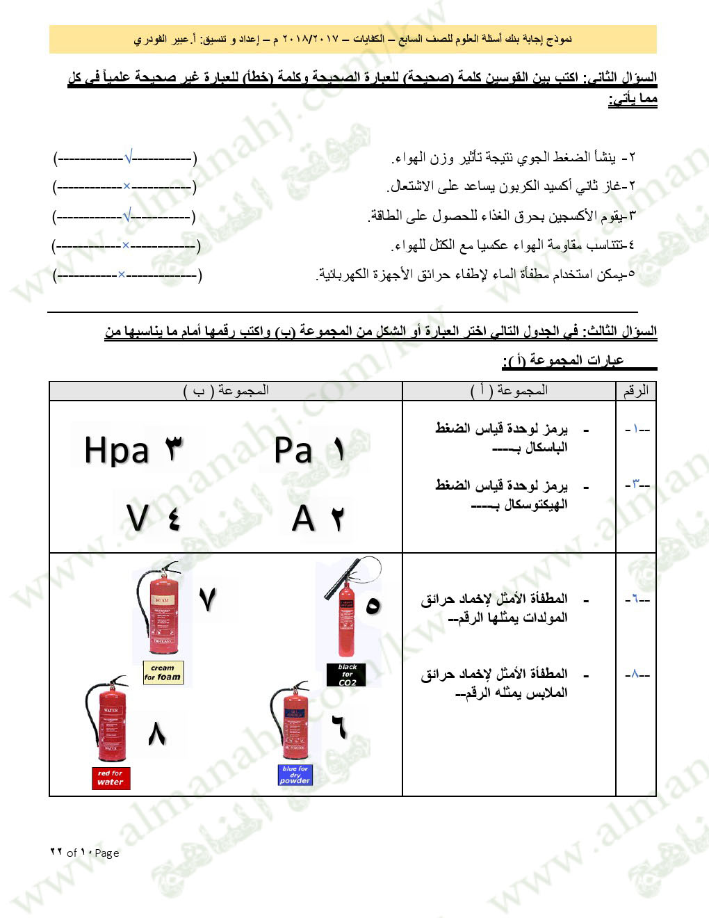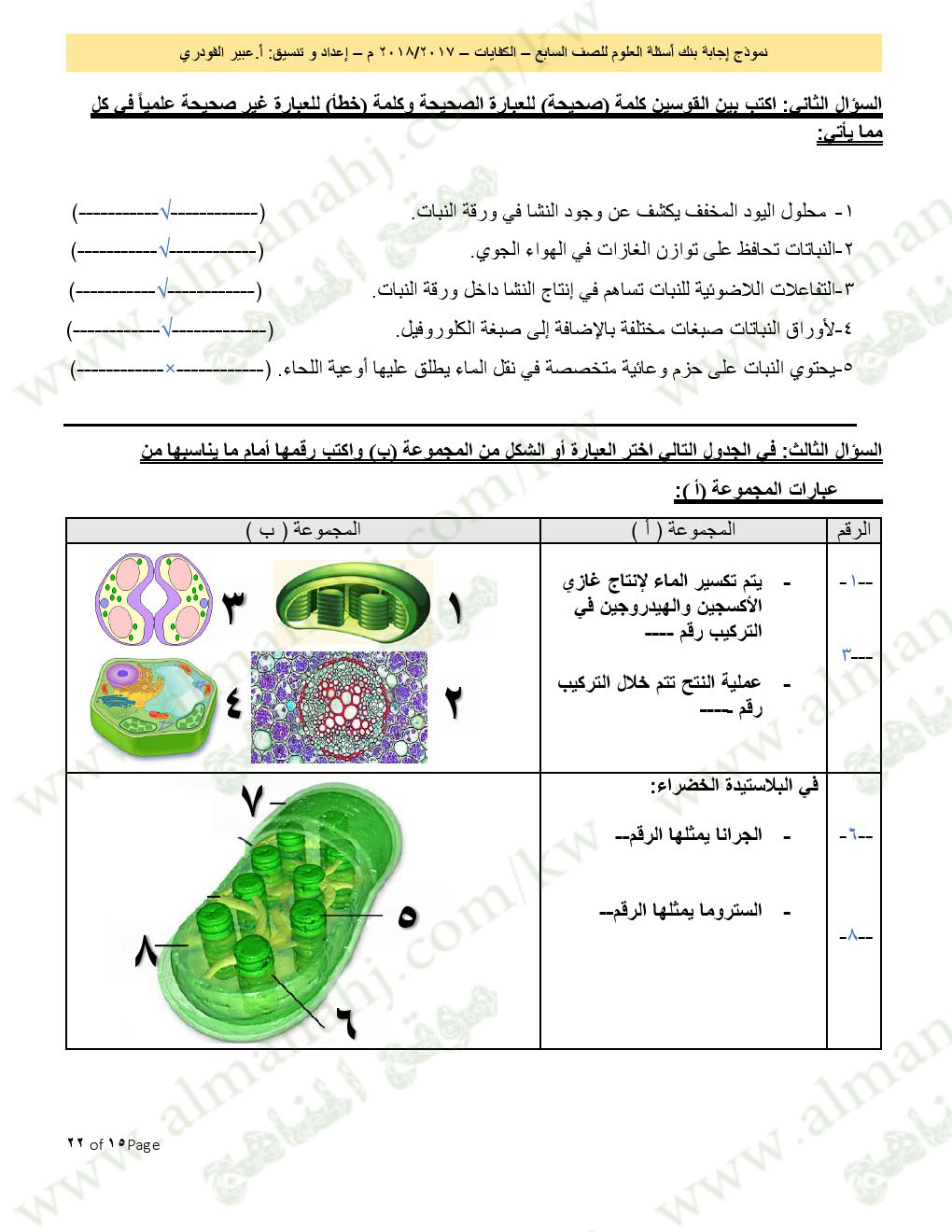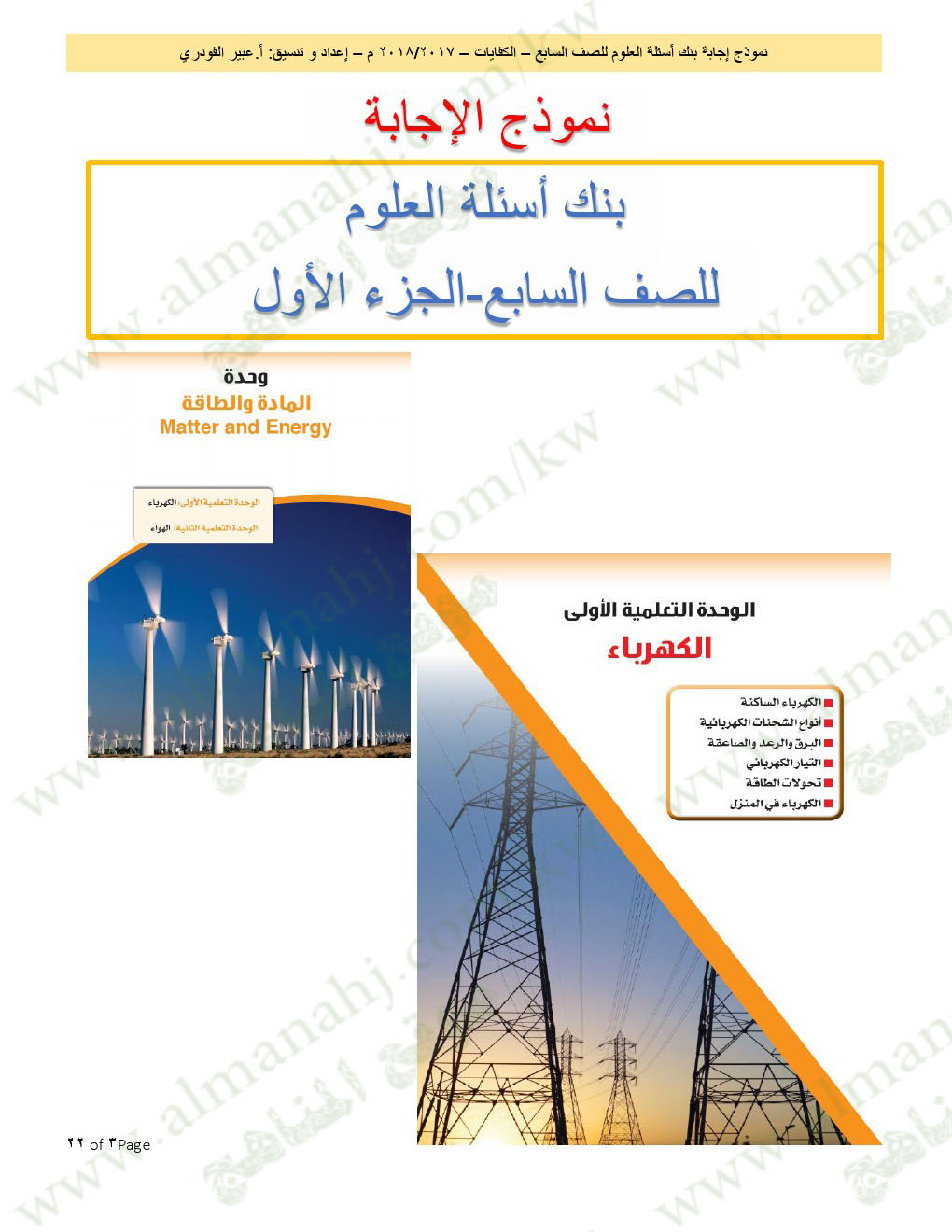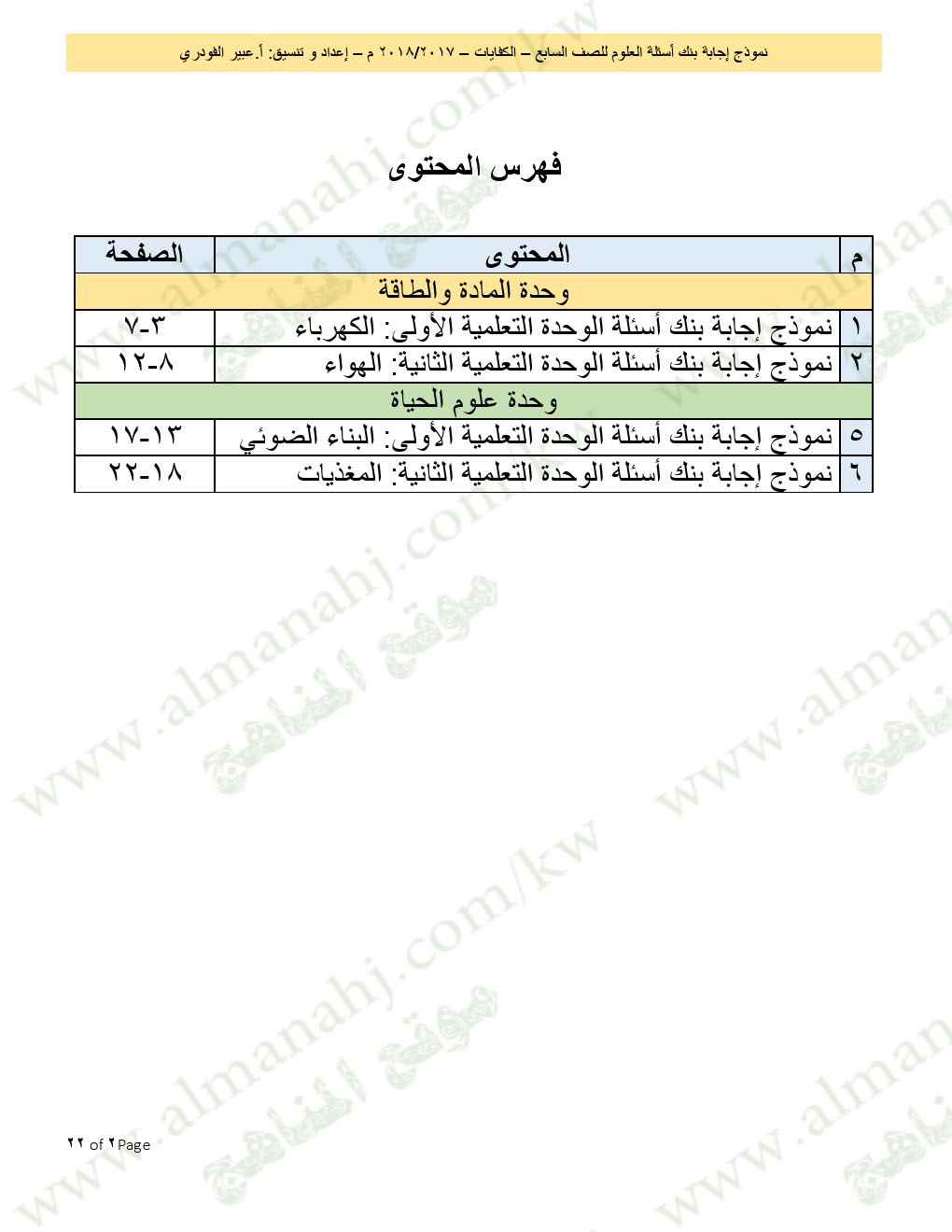 معلومات الملف: الصف السابع, علوم, الفصل الأول, 2017-2018,نموذجإجابة بنك أسئلة العلوم -الكفايات | ||