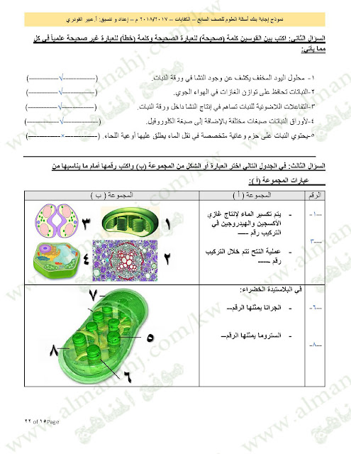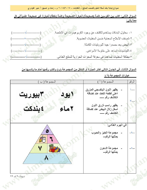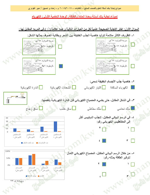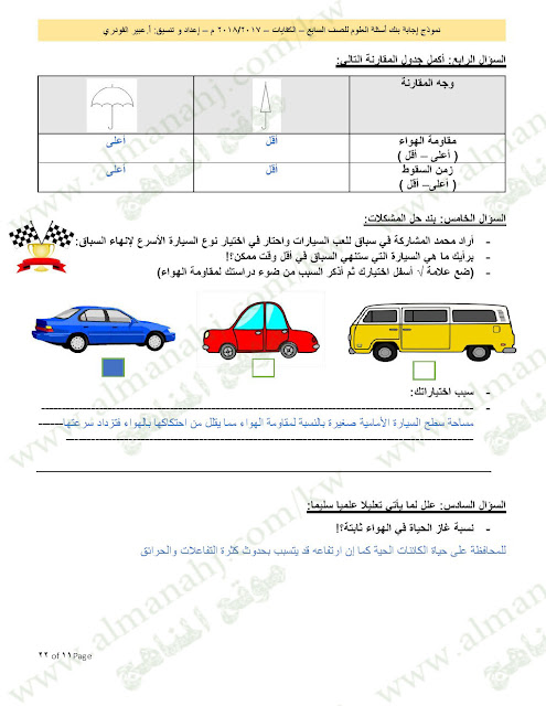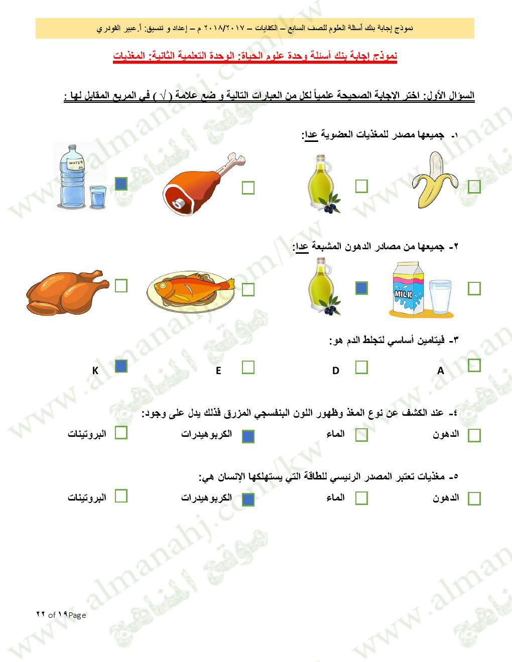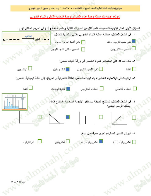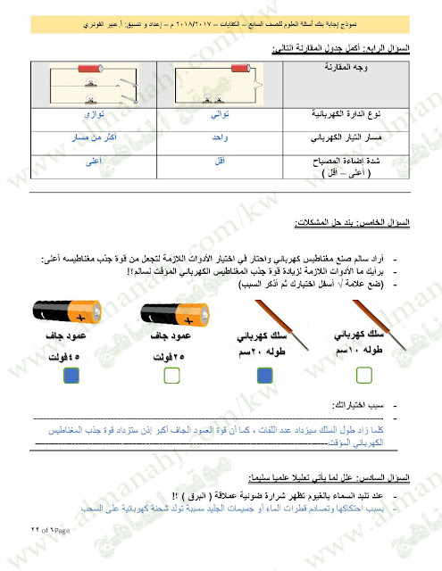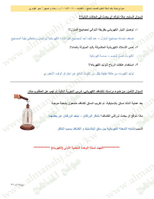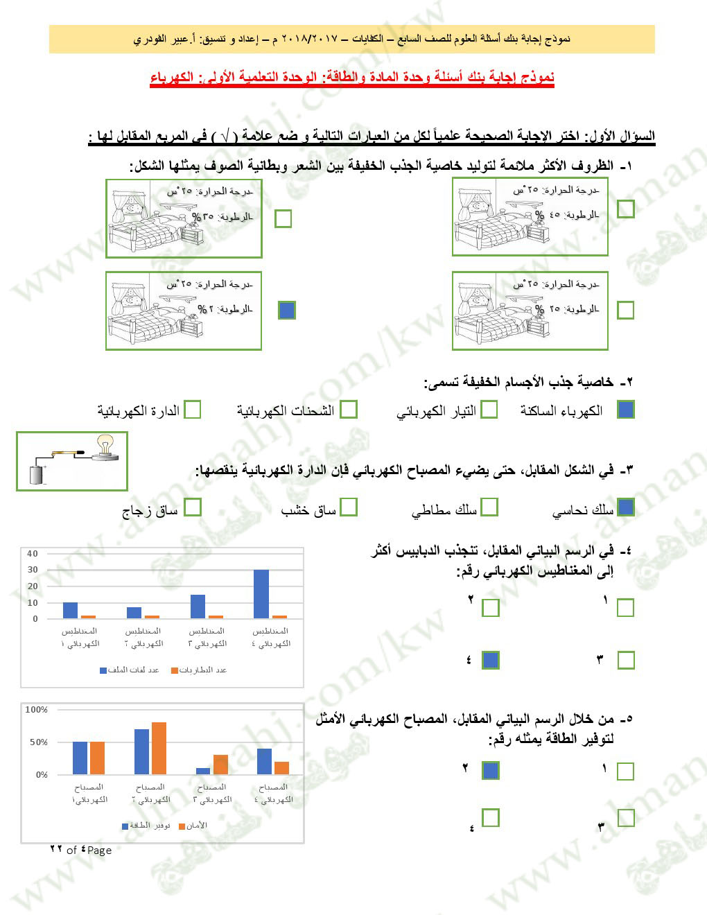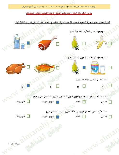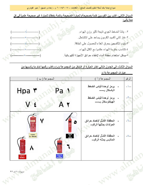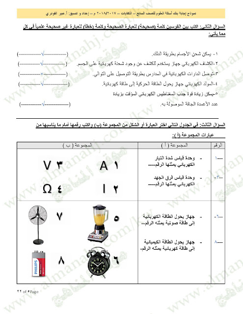 معلومات الملف: الصف السابع, علوم, الفصل الأول, 2017-2018,نموذجإجابة بنك أسئلة العلوم -الكفايات | ||