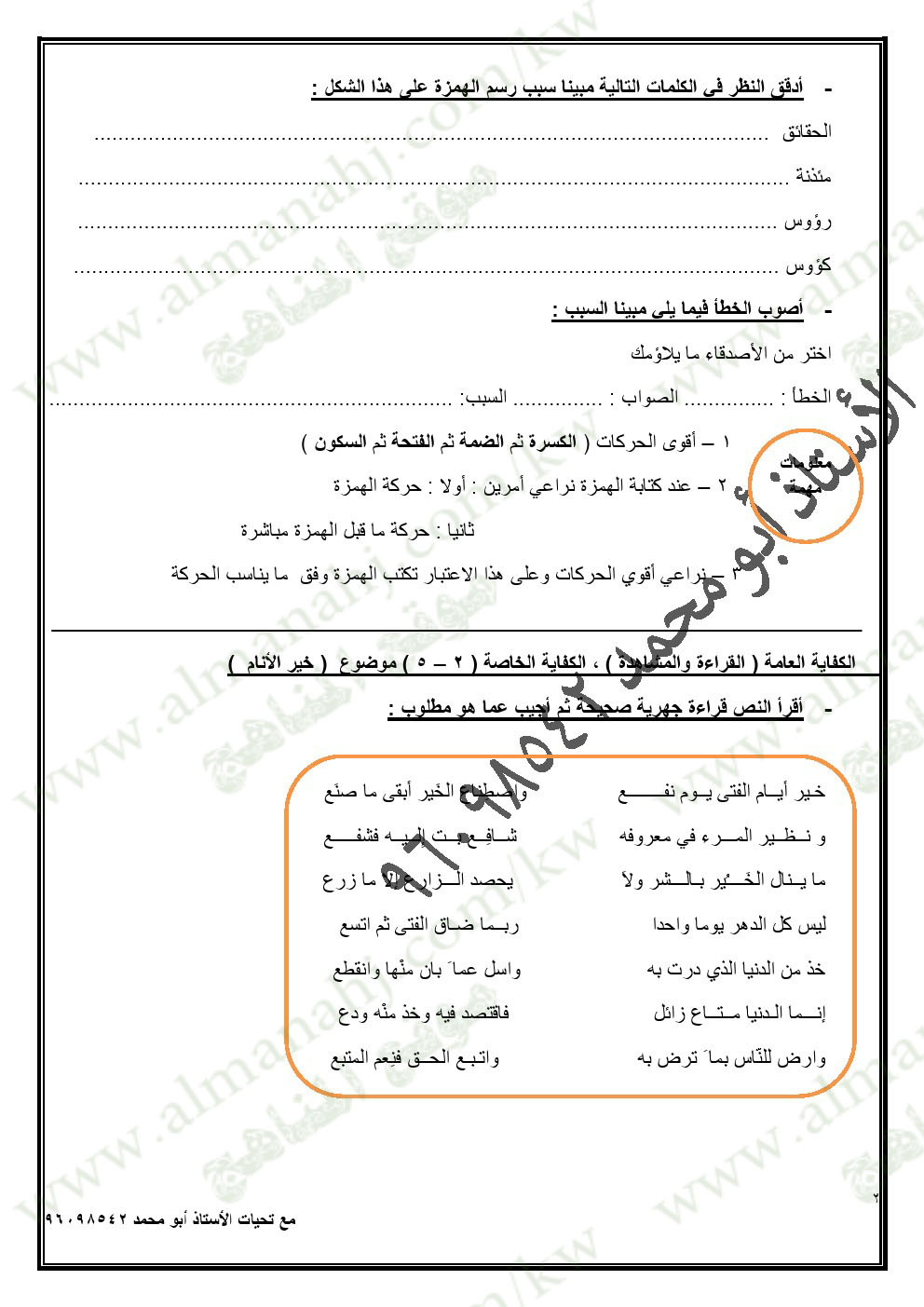 | المادة: لغة عربية | |||