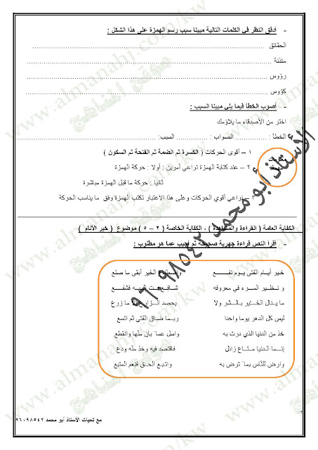 | 1. كل ما يخص امتحان الاعادة (تمكين) للصف السابع