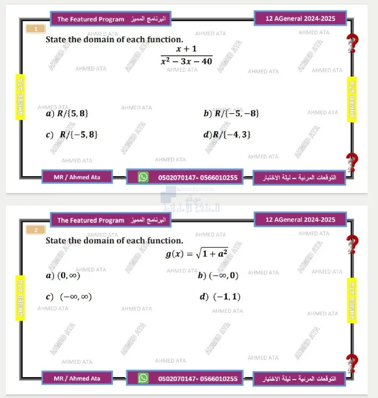 معلومات الملف: نرفق لكم ملف يتضمن التوقعات المرئية ليلة الاختبار وفق الهيكل الوزاري بدون حل من مادة الرياضيات للصف الثاني عشر العام الفصل الدراسي الأول للعام الدراسي 2024-2025 | ||
