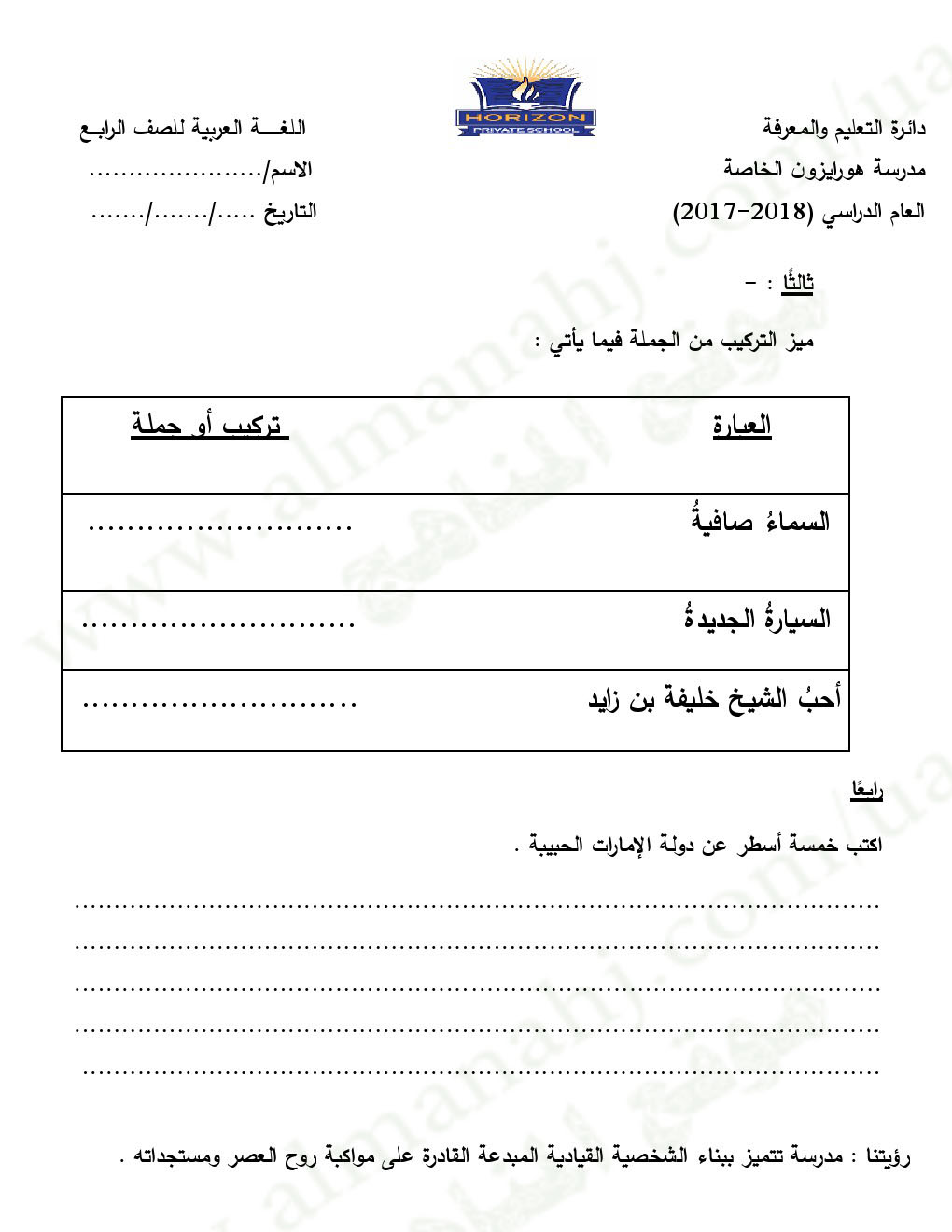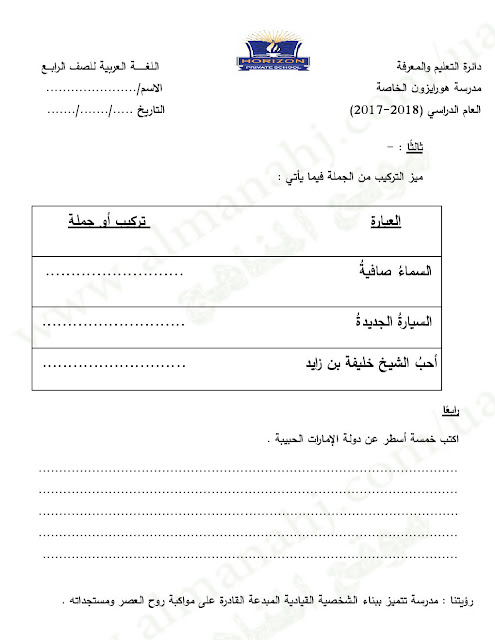 معلومات الملف: الصف الرابع, الفصل الأول, لغة عربية, 2017-2018, تدريبات عامة على الوحدة الاولى | |||