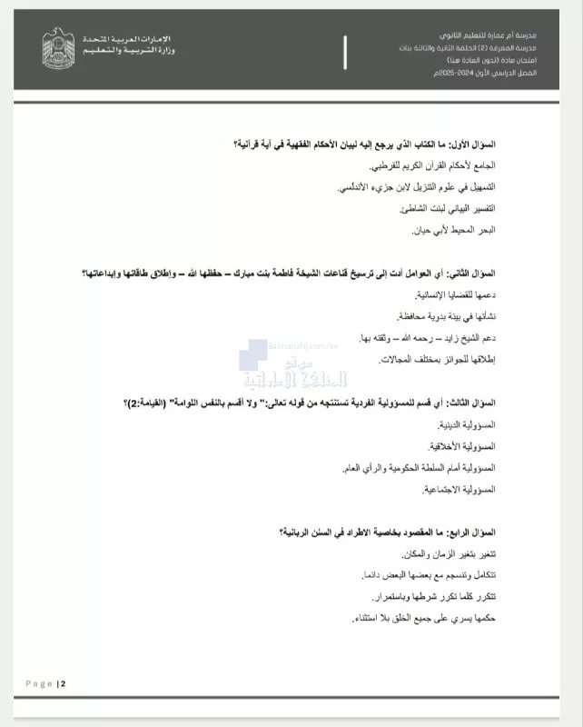 أنت هنا: موقع المناهج ⇦ المناهج الإماراتية ⇦ الصف الثاني عشر ⇦ تربية اسلامية ⇦ الفصل الأول ⇦ الامتحان النهائي |