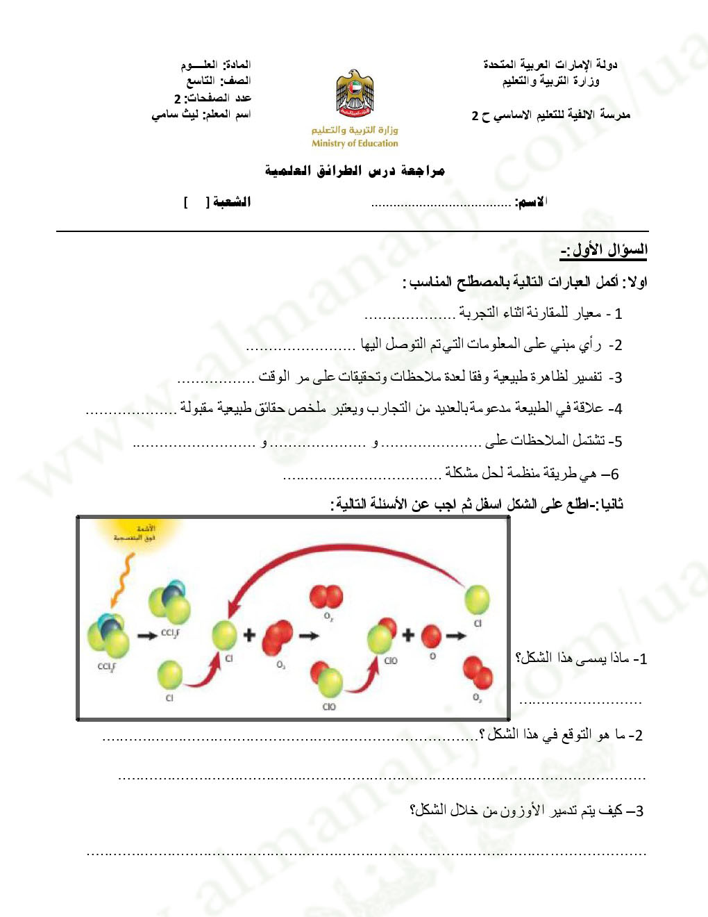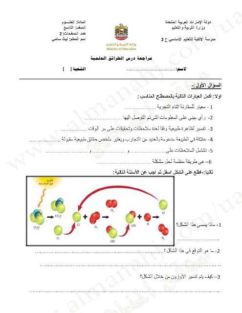 معلومات الملف: الصف التاسع العام, الفصل الأول, علوم, 2017-2018, درس الطرائق العلمية مع الاجابة | |||