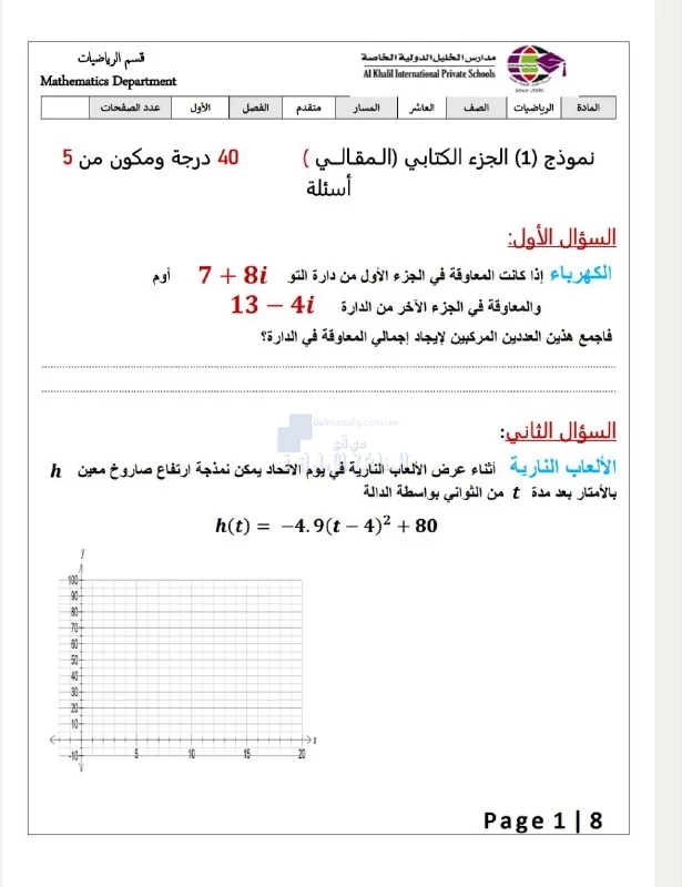 يتم الآن تحضير الملف (نموذج اختبار تدريبي 1 وفق الهيكل الوزاري القسم الكتابي منهج بريدج) من أجل التحميل