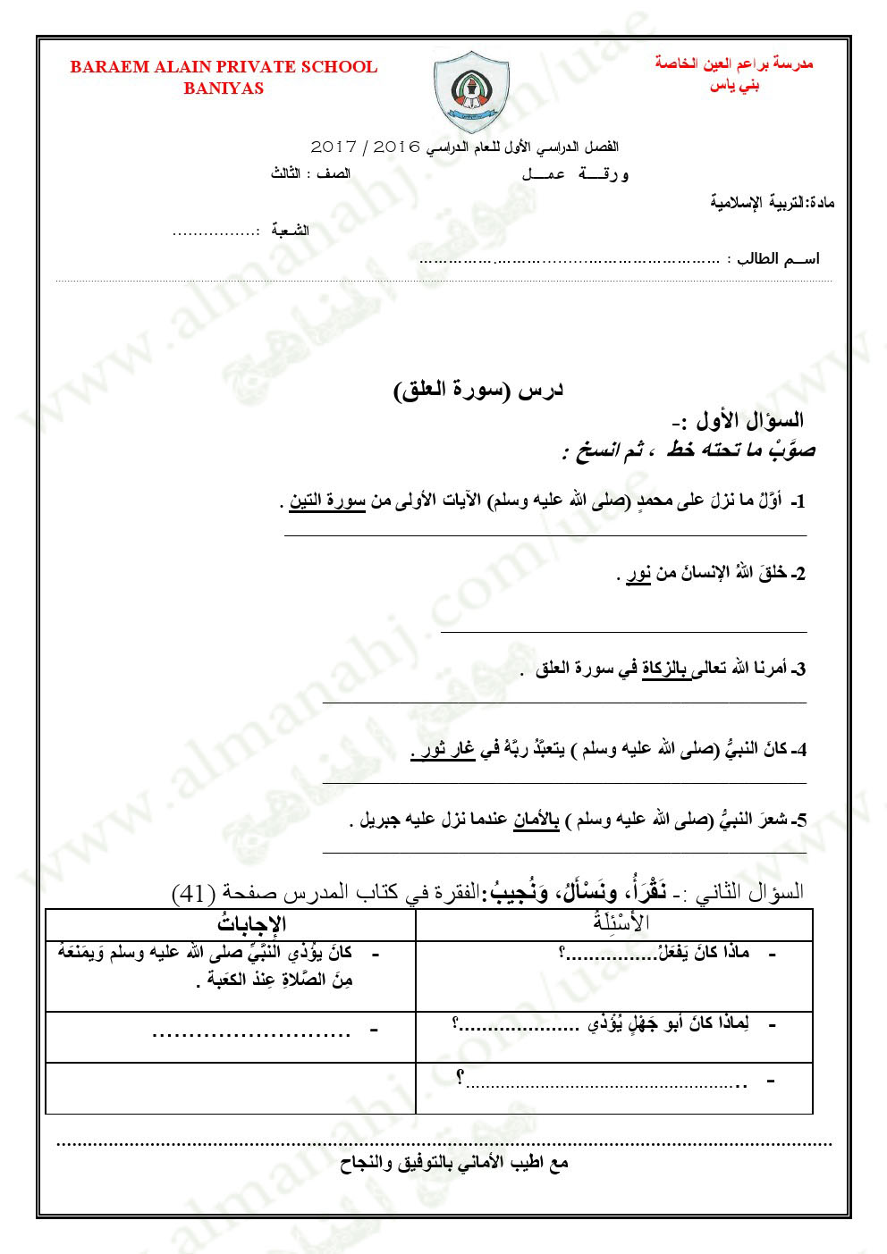أنت هنا: موقع المناهج ⇦ المناهج الإماراتية ⇦ الصف الثالث ⇦ تربية اسلامية ⇦ الفصل الأول ⇦ أوراق عمل |