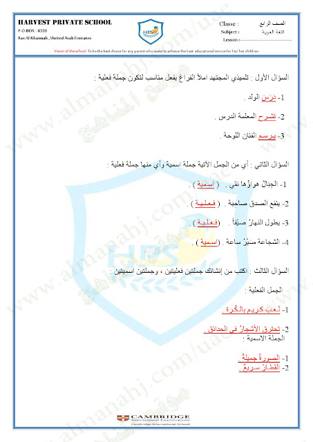 معلومات الملف: الصف الرابع, الفصل الأول, لغة عربية, 2017-2018, ورقة عمل حول الجملية الاسمية والجملة الفعلية | |||