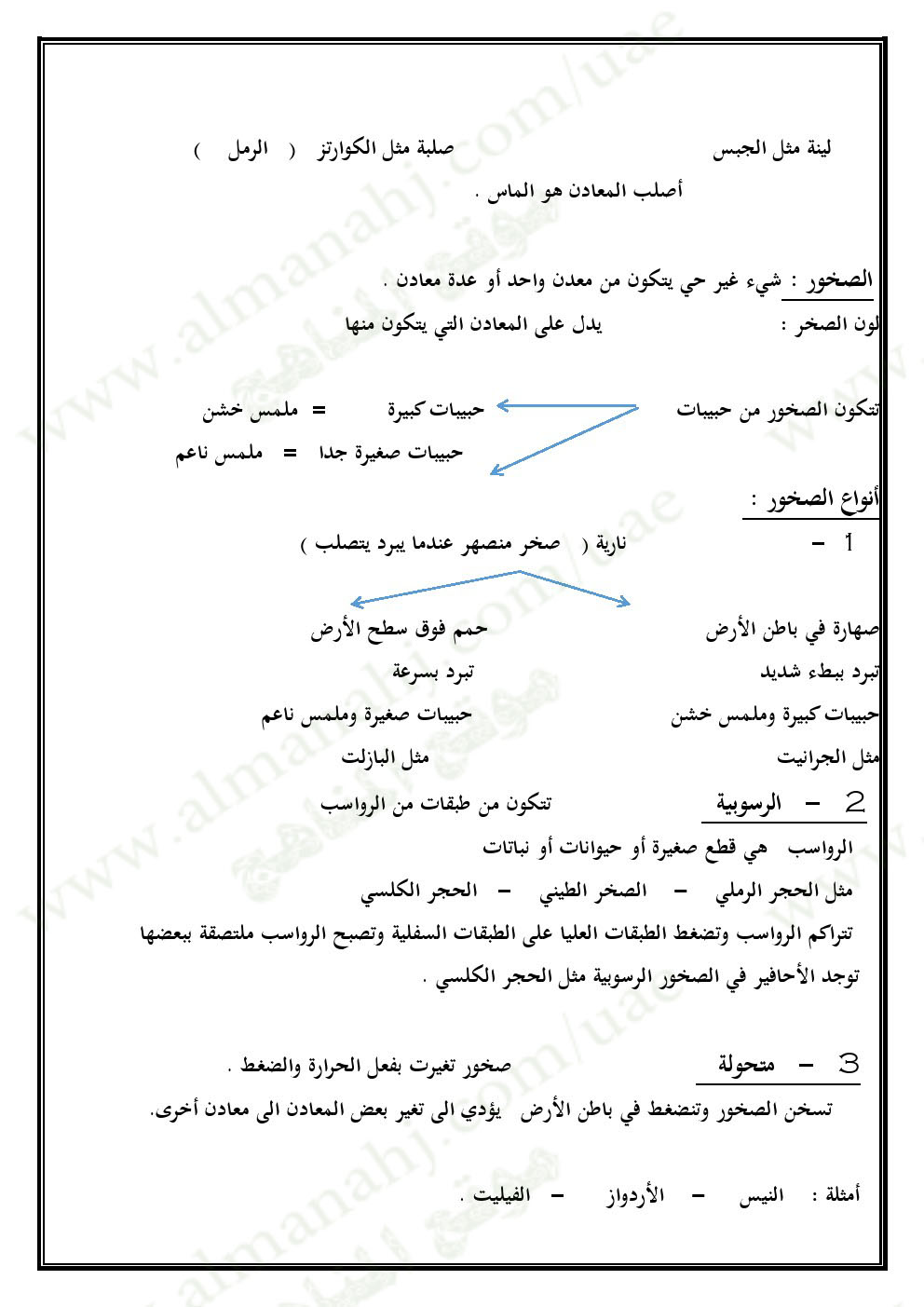 | ملخص الوحدة السادسة (المعادن والصخور التربة الأحافير والوقود) | |||