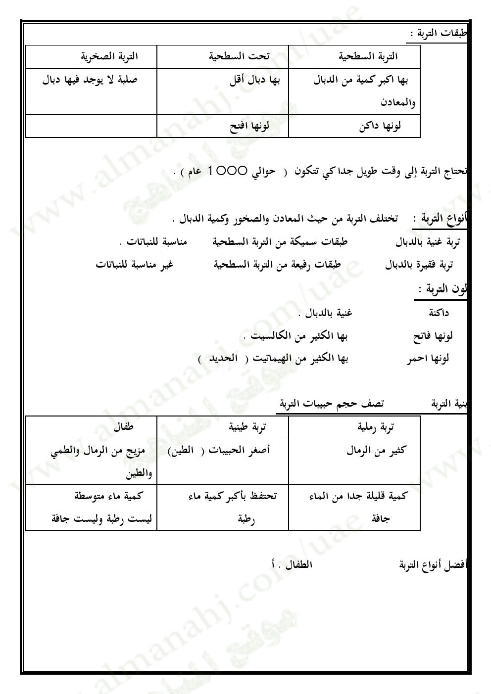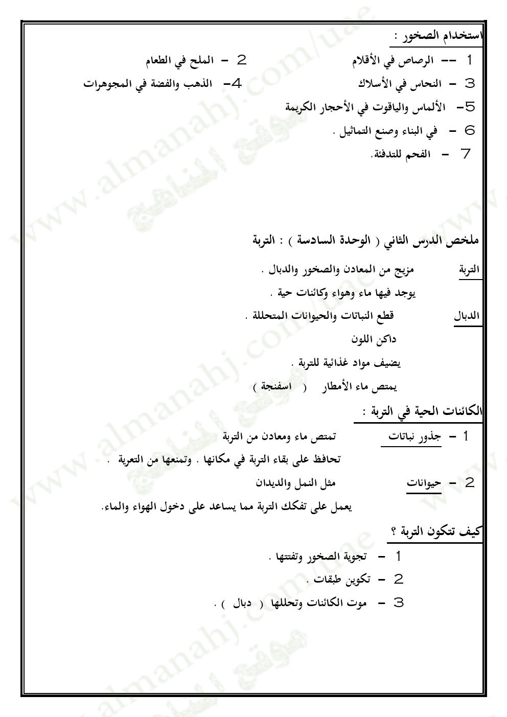 ملخص الوحدة السادسة (المعادن والصخور التربة الأحافير والوقود) | |||