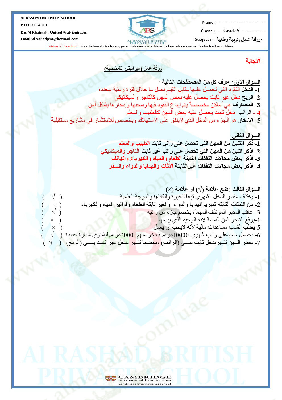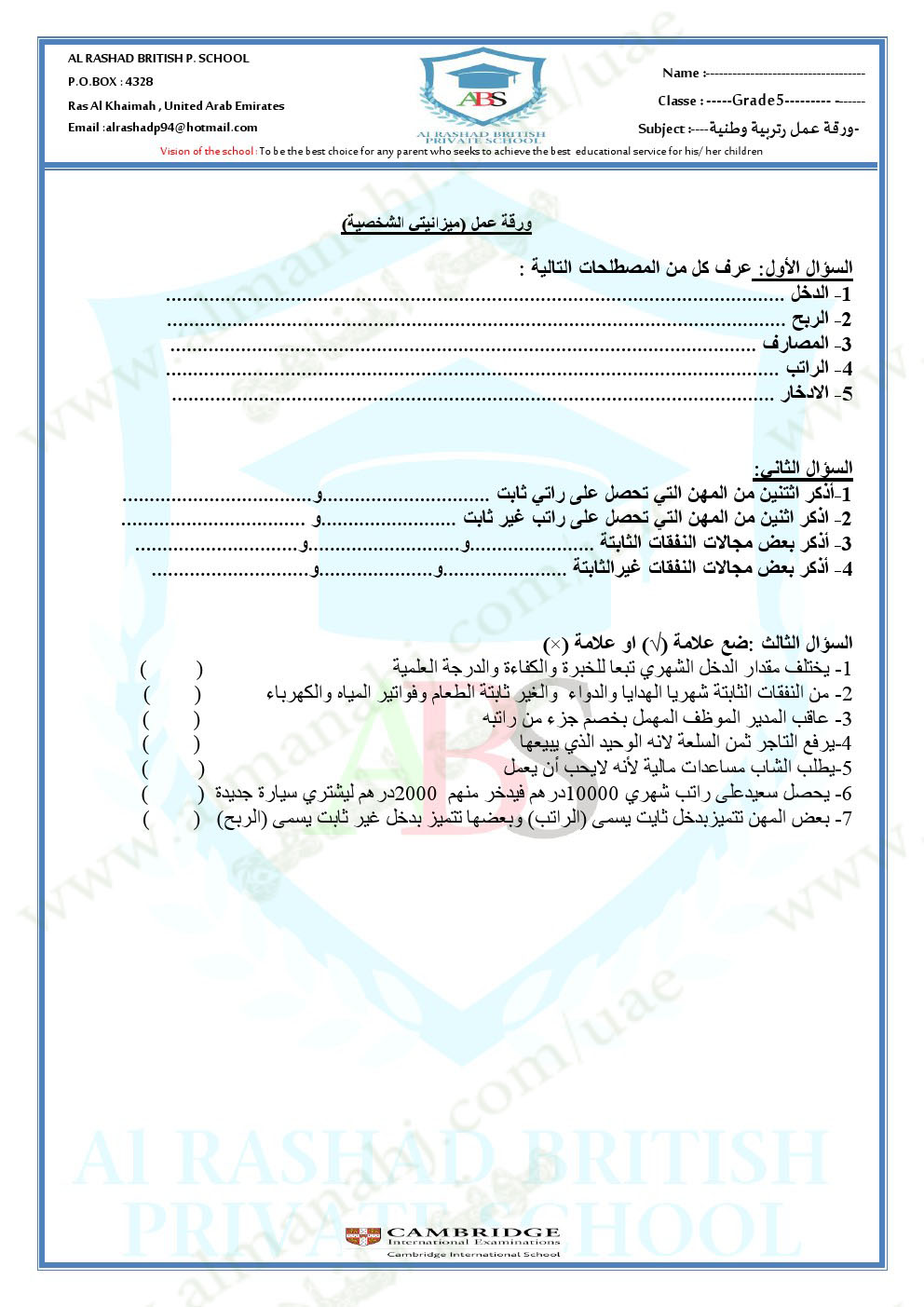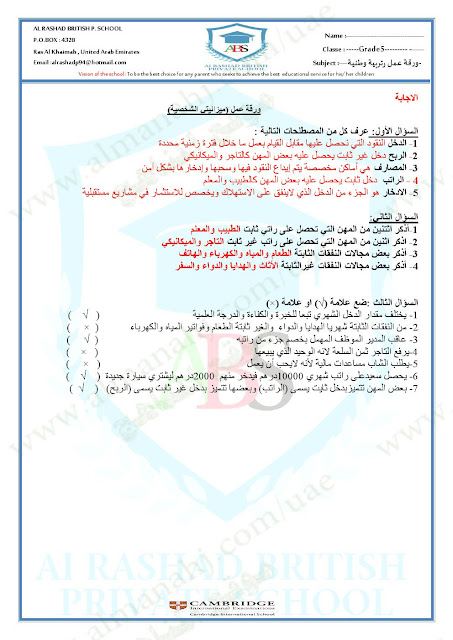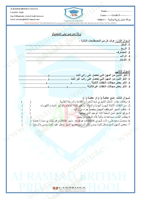 اضغط هنا لتحميل وعرض ( ورقة عمل ميزانيتي الشخصية ودولة الامارات تبتكر+الحل ) |